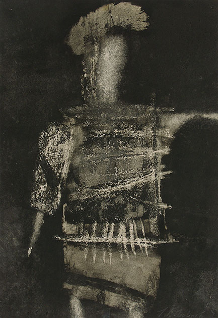 tusz pióro, pędzel, decollage, papier kremowy