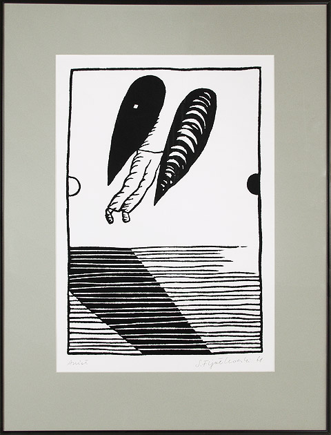 Stanisław Fijałkowski (Zdołbunow na Wołyniu 1922 - Łódź 2020) w latach 1944-1945 przebywał na robotach przymusowych w Królewcu. W latach 1946- 1951 studiował w Państwowej Wyższej Szkole Sztuk Plastycznych w Łodzi pod kierunkiem Władysława Strzemińskiego, Stefana Wegnera i Ludwika Tyrowicza, u którego uzyskał dyplom. W latach 1947-1993 był pedagogiem w macierzystej uczelni, od 1983 profesorem. Pełnił funkcje prorektora i dziekana Wydziału Grafiki. Wykładał też za granicą: w Mons (1978, 1982), Giessen (1989-1990), Marburgu (1990). Jest wiceprezydentem Międzynarodowego Stowarzyszenia Drzeworytników XYLON w Szwajcarii i przewodniczącym Polskiej Sekcji tej organizacji. Należy do zagranicznych Akademii nauk i sztuk w Salzburgu i Brukseli. Jest laureatem Nagrody Krytyki Artystycznej im. Cypriana Norwida 1971, Nagrody im. Jana Cybisa 1990 i wielu innych wyróżnień. Jako pierwszy w Polsce przetłumaczył teksty Wasyla Kandinskiego („Punkt i linia a płaszczyzna” i „O duchowości w sztuce”), oba wydane drukiem, oraz Kazimierza Malewicza „Świat bezprzedmiotowy”. Malarstwo Fijałkowskiego bazuje na skromnym zasobie abstrakcyjnych znaków i ograniczonej gamie barwnej. Kompozycje, w większości sugerujące ujęcia pejzażowe czy szerzej – przestrzenne, budowane są jakby pojedynczymi dotknięciami pędzla. Każdy szczegół nabiera ważności, śledzi się każdy niuans barwy czy faktury. Charakterystyczne kształty i motywy powtarzają się w różnych konfiguracjach w pracach artysty niczym wyrazy, z których układa za każdym razem inną opowieść. Obrazy noszą zazwyczaj poetyckie tytuły, często wpadające w tony groteskowe czy surealistyczne. Cechy te składają się na niezwykłe, intrygujące, autonomiczne zjawisko artystyczne. Malarstwu Fijałkowskiego od początku lat 60. towarzyszy czarno-biała grafika, głównie linoryt i drzeworyt, sporadycznie litografia.