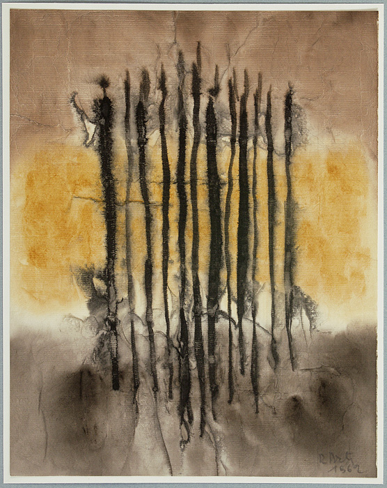 Roman Artymowski (Lwów 1919 - Łowicz 1993) studiował w l. 1945-49 w ASP w Krakowie, uzyskując dyplom u Eugeniusza Eibischa. W 1950 podjął pracę pedagogiczną w ASP w Warszawie. W 1953-56 wraz z żoną Zofią pracował przy polichromii odbudowywanych kamieniczek Starego i Nowego Miasta, za co w 1953 otrzymał nagrodę państwową II st. (zespołową). Równolegle w 1953-59 był redaktorem graficznym „Przeglądu Artystycznego”. Następnie wykładał w uczelniach artystycznych w Bagdadzie. Po powrocie podjął pracę pedagogiczną jako docent PWSSP w Łodzi (1969-75), w l. 1971-75 był rektorem tej uczelni. Od 1975 ponownie wykładał w ASP w Warszawie, w 1982 został profesorem, w l. 1982-84 pełnił funkcję rektora. Artymowski od połowy lat 50. tworzył kompozycje abstrakcyjne lub na pograniczu . W malarstwie, zwłaszcza akwarelowym, stosował niekiedy swobodnie rozlaną plamę, co zbliża jego wczesną twórczość do abstrakcji informel. W latach 60. i 70. zdyscyplinował formę, ograniczając się do różnych rozwiązań kolorystycznych.