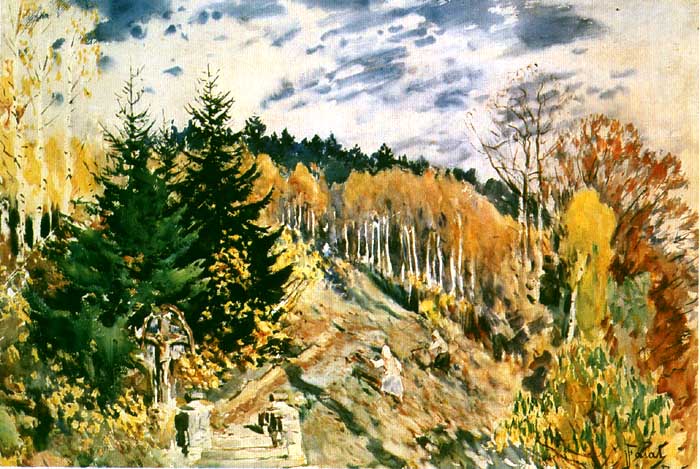 Julian Fałat (Tuligłowy [okręg lwowski] 1853 - Bystra k. Bielska 1929) - malarz i pedagog - jeden z najwybitniejszych artystów polskich okresu przełomu XIX i XX wieku, członek polskich i europejskich stowarzyszeń twórczych oraz Królewskiej Akademii Sztuk Pięknych w Berlinie, wielokrotnie odznaczany medalami na wystawach międzynarodowych. Studiował malarstwo u Władysława Łuszczkiewicza i Leona Dembowskiego w Szkole Sztuk Pięknych w Krakowie (1868-71 i 1881) i w Akademii Sztuk Pięknych w Monachium u Alexandra Strähubera i Johana Leonhardta Raaba (1877-80). Po studiach spędził kilka miesięcy w Rzymie, w 1884 był w Paryżu i w Hiszpanii, a w 1885 odbył podróż morską dookoła świata. W 1886 podczas polowania u ks. Radziwiłłów w Nieświeżu poznał późniejszego cesarza Niemiec Wilhelma II - dla którego następnie w latach 1886-95 pracował w Berlinie jako malarz nadworny. W latach 1894-96 współpracował z Wojciechem Kossakiem przy panoramie Berezyna. W 1895 został powołany na stanowisko dyrektora Szkoły Sztuk Pięknych w Krakowie, w której gruntownie zreformował system nauczania, przekształcając tę uczelnię w nowoczesną Akademię Sztuk Pięknych (r.1900). Do roku 1910 był rektorem Akademii; po przejściu na emeryturę osiadł w miejscowości Bystra k. Bielska. Znakomity akwarelista, malował także olejno. We wcześniejszym okresie tworzył w konwencji realistycznej, z czasem rozjaśnił i wzbogacił paletę, a w akwarelach wprowadzał rozlewną plamę barwną. Zasłynął jako malarz scen myśliwskich rozgrywających się najczęściej w zimowej scenerii; malował też pejzaże, wiejskie sceny rodzajowe, portrety, widoki miejskie.