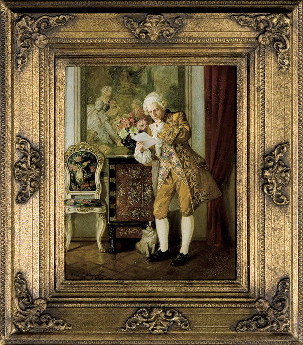 Ludwig Augustin, malarz austriacki; w latach 1923-1926 studiował w jakiejś bliżej nieokreślonej Akademii. Malował martwe natury, kwiaty, orientalne sceny haremowe oraz stylizowane na czasy rokoka fetes galantes, drobiazgowo i z wielką biegłością oddając detale sprzętów, ozdobnych przedmiotów, ceramiki, tkanin, strojów, koronek.