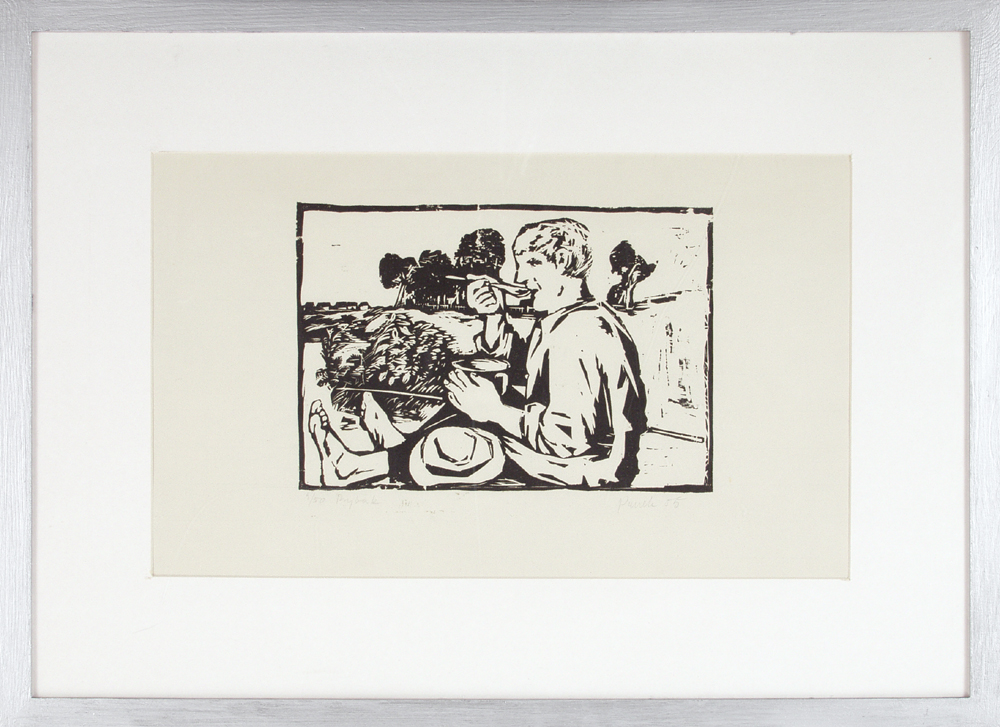 Jerzy Panek (Tarnów 1918 - Kraków 2001) odbył studia graficzne w Państwowym Instytucie Sztuk Plastycznych w Krakowie (1937-1939). Kontynuował je w Kunstgewerbeschule (1940-1942), a następnie na Wydziale Malarstwa ASP w Krakowie (1945-1948, dyplom 1955). W 1955 odbył podróż do Chin. Przez rok uczył rysunku i malarstwa na Wydziale Form Przemysłowych ASP w Krakowie (1967-1968). Od początku lat 50. skupił się na technice drzeworytu, którą traktował niekonwencjonalnie, mianowicie jako okazję do pracy na pograniczu rzeźby. Klocki drzeworytnicze Panka odznaczały się nie tylko wielkimi rozmiarami, ale i tym, że ich "powierzchnie drukujące" zredukowane były do syntetycznych, oszczędnych zarysów kształtów na szerokich obszarach bieli. Tematyka jego drzeworytów obracała się wokół ludowych, wiejskich i małomiasteczkowych spraw i klimatów. Artysta szczególnie chętnie portretował zwierzęta. Jako grafik zyskał międzynarodową renomę i wiele nagród. W latach 70. zajął się w szerszym zakresie malarstwem, tworząc serie "Autoportretów", nacechowanych rubaszną autoironią.