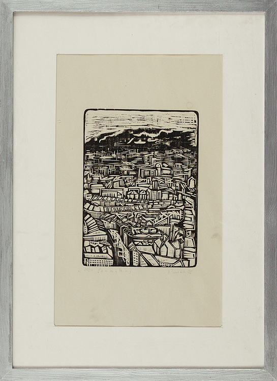 Jerzy Panek (Tarnów 1918 - Kraków 2001) odbył studia graficzne w Państwowym Instytucie Sztuk Plastycznych w Krakowie (1937-1939). Kontynuował je w Kunstgewerbeschule (1940-1942), a następnie na Wydziale Malarstwa ASP w Krakowie (1945-1948, dyplom 1955). W 1955 odbył podróż do Chin. Przez rok uczył rysunku i malarstwa na Wydziale Form Przemysłowych ASP w Krakowie (1967-1968). Od początku lat 50. skupił się na technice drzeworytu, którą traktował niekonwencjonalnie, mianowicie jako okazję do pracy na pograniczu rzeźby. Klocki drzeworytnicze Panka odznaczały się nie tylko wielkimi rozmiarami, ale i tym, że ich "powierzchnie drukujące" zredukowane były do syntetycznych, oszczędnych zarysów kształtów na szerokich obszarach bieli. Tematyka jego drzeworytów obracała się wokół ludowych, wiejskich i małomiasteczkowych spraw i klimatów. Artysta szczególnie chętnie portretował zwierzęta. Jako grafik zyskał międzynarodową renomę i wiele nagród. W latach 70. zajął się w szerszym zakresie malarstwem, tworząc serie "Autoportretów", nacechowanych rubaszną autoironią.