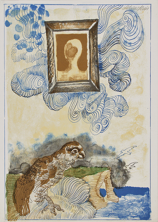 Jan Lebenstein (Brześć Litewski 1930 - Kraków 1999) w latach 1948-1954 studiował malarstwo w ASP w Warszawie pod kierunkiem prof. Eugeniusza Eibischa i Artura Nachta-Samborskiego. W 1955 wziął udział w wystawie w warszawskim Arsenale. Zaprzyjaźniony w czasie studiów z Mironem Białoszewskim, swą pierwszą wystawę indywidualną pokazał w 1956 w Teatrze na Tarczyńskiej. W 1959 zdobył Grand Prix de la Ville de Paris na I Biennale Młodych w Paryżu i w tym roku przeniósł się na stałe do Paryża. Po seriach "figur kreślonych" (na papierze milimetrowym) i "figur hieratycznych" z lat 1955-1958 maluje cykl "figur osiowych" (1958-1962), które wystawia w Paryżu i USA. Równolegle w 1960 zaczyna rysowane "karnety", rodzaj dziennika, który w przyszłości dostarczy motywów wykorzystanych w obrazach. W latach 1964-1965 maluje "Bestiarium", cykl fakturowych, archaizowanych stworów przypominających prehistoryczne wykopaliska. Bezpośrednio po nich wprowadza do swych obrazów postaci ludzkie i fantastyczne, odgrywające sceny ni to mitologiczne, ni to ze snu, często przesycone erotyką. W 1970 projektuje witraże dla Centre du Dialogue w Paryżu. W W 1971 otrzymuje obywatelstwo francuskie 1974 powstają gwasze inspirowane Folwarkiem zwierzęcym George'a Orwella. W latach 1976-1989 tworzy wyłącznie w technice gwaszu i pastelu, podejmując tematykę mitologiczną i zaczerpniętą z Biblii: cykle ilustracji do Księgi Hioba (wyd. 1979) i do Apokalipsy (wyd. 1986) w nowych przekładach Czesława Miłosza. W 1989 powraca do malarstwa olejnego (cykl "Pergamon"). Artysta otrzymał m. in. nagrodę Fundacji im. Alfreda Jurzykowskiego w 1976, Nagrodę Muzeum Archidiecezji Warszawskiej w 1985, Nagrodę im. Jana Cybisa w 1987.