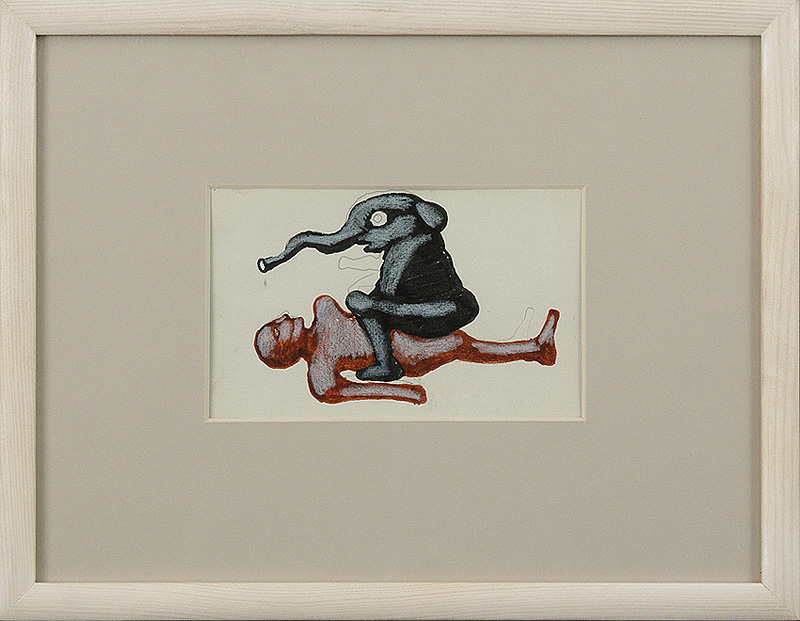 Jan Lebenstein (Brześć Litewski 1930 - Kraków 1999) w latach 1948-1954 studiował malarstwo w ASP w Warszawie pod kierunkiem prof. Eugeniusza Eibischa i Artura Nachta-Samborskiego. W 1955 wziął udział w wystawie w warszawskim Arsenale. Zaprzyjaźniony w czasie studiów z Mironem Białoszewskim, swą pierwszą wystawę indywidualną pokazał w 1956 w Teatrze na Tarczyńskiej. W 1959 zdobył Grand Prix de la Ville de Paris na I Biennale Młodych w Paryżu i w tym roku przeniósł się na stałe do Paryża. Po seriach "figur kreślonych" (na papierze milimetrowym) i "figur hieratycznych" z lat 1955-1958 maluje cykl "figur osiowych" (1958-1962), które wystawia w Paryżu i USA. Równolegle w 1960 zaczyna rysowane "karnety", rodzaj dziennika, który w przyszłości dostarczy motywów wykorzystanych w obrazach. W latach 1964-1965 maluje "Bestiarium", cykl fakturowych, archaizowanych stworów przypominających prehistoryczne wykopaliska. Bezpośrednio po nich wprowadza do swych obrazów postaci ludzkie i fantastyczne, odgrywające sceny ni to mitologiczne, ni to ze snu, często przesycone erotyką. W 1970 projektuje witraże dla Centre du Dialogue w Paryżu. W W 1971 otrzymuje obywatelstwo francuskie 1974 powstają gwasze inspirowane Folwarkiem zwierzęcym George'a Orwella. W latach 1976-1989 tworzy wyłącznie w technice gwaszu i pastelu, podejmując tematykę mitologiczną i zaczerpniętą z Biblii: cykle ilustracji do Księgi Hioba (wyd. 1979) i do Apokalipsy (wyd. 1986) w nowych przekładach Czesława Miłosza. W 1989 powraca do malarstwa olejnego (cykl "Pergamon"). Artysta otrzymał m. in. nagrodę Fundacji im. Alfreda Jurzykowskiego w 1976, Nagrodę Muzeum Archidiecezji Warszawskiej w 1985, Nagrodę im. Jana Cybisa w 1987.