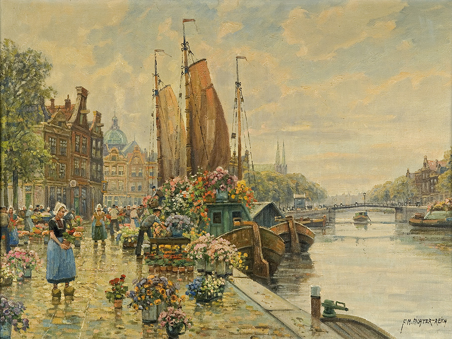Franz Max Richter-Reich (Berlin 1896 – Hamburg 1950) – mało znany artysta niemiecki (?); studiował w Lewin-Funke-Schule w Berlinie. Później przebywał w Amsterdamie i Haarlemie. Wiadomo także, że w 1934 był w Dordrechcie. Malował pejzaże, mariny, a także widoki miast, wśród których powtarzały się często motywy targów kwiatowych lub rybnych.