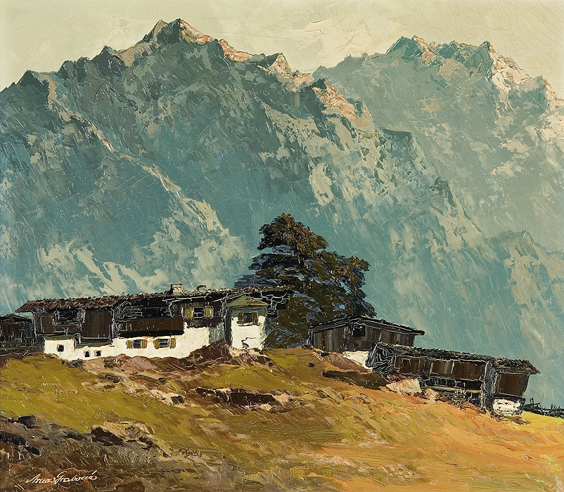 Arnold-Graboné to artystyczny pseudonim niemieckiego pejzażysty Johana Georga Arnolda, który swoją edukację malarską rozpoczynał jako samouk, a od 1922 studiował w Akademiach w Sttutgarcie, w Monachium u Heinricha Zügela, w Berlinie u Maxa Liebermana i H.Königa, w Wiedniu i Paryżu. Debiut na wystawie w Wiedniu przyniósł mu złoty medal za Widok z Hardangerfjord. W 1930 został profesorem Akademii w Zurichu. W 1933 wrócił do Niemiec i zamieszkał w Fürstenfeldbruck, skąd w 1937 przeniósł się do Tutzing, a w 1952 do Buchhof nad jeziorem Starnbergskim. Malował niemal wyłącznie pejzaże – z Alp, znad jezior, znad morza. Malował też widoki z odbywanych podróży, m.in. Ulice w Kairze, Stary młyn nad Arno, Brzegi Capri. Stosował specyficzną technikę malarską i często posługiwał się szpachlą.