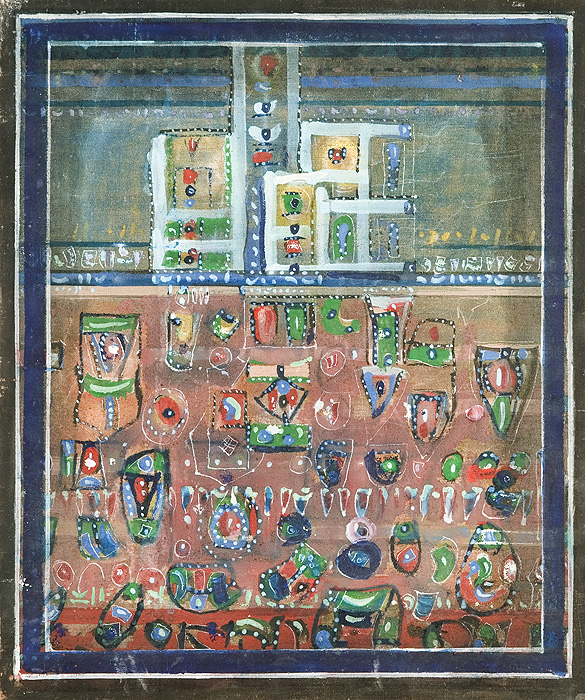 Bogusław Szwacz (Leżajsk 27 III 1912 – Warszawa 24 II 2009) studiował malarstwo na ASP w Krakowie, którą ukończył z wyróżnieniem w 1937. W czasie studiów odbył służbę w Szkole Podchorążych Rezerwy na kresach oraz podróż studyjną do Wiednia. Lata wojny przetrwał we Lwowie, kolejno pod okupacją sowiecką i niemiecką. W 1944 ewakuowany z Niemcami do Krakowa, osiadł w Tyńcu, gdzie powstał cykl pejzażowych akwarel. Po wojnie włączył się w organizowanie życia artystycznego, w 1946 podjął pracę pedagogiczną w krakowskiej ASP. W 1946 wystawiał z Grupą Młodych Plastyków Kantora. W 1947/48 wyjechał na stypendium do Paryża, gdzie przystąpił do grupy „Le Surréalisme Révolutionnaire", współredagował jej dwumiesięcznik. W 1948 przeniósł się do Warszawy, gdzie związał się z Klubem Młodych Artystów i Naukowców. Okres działalności w ruchu awangardy powojennej zamknął udziałem w I Wystawie Sztuki Nowoczesnej w Krakowie na przełomie 1948/49. Od końca 1949 pracował w warszawskiej PWSSP, a po jej połączeniu się z ASP w 1950 rozpoczął wieloletnią karierę pedagogiczną w tej uczelni, trwającą do emerytury w 1982. W latach socrealizmu uczestniczył we wszystkich Ogólnopolskich Wystawach Plastyki (1950, 1951/52, 1952/53, 1954) i w innych oficjalnych wystawach. Jego wystawa indywidualna w marcu 1955 była jedną z pierwszych wystaw sztuki abstrakcyjnej. W tym czasie artysta zaczął formułować własną teorię sztuki, której pozostaje wierny do dziś. Koncepcja Ars-Horme (Sztuki Poruszania Wyobraźni) konkretyzuje się w obrazach, których odmiany określają terminy ars-hormegram, ars-hormegraf i ars-hormegryf. Są to kompozycje budowane z drobnych form, których rytmy i zagęszczenia na płaszczyźnie są dodatkowo akcentowane fakturą i kolorem. Teoria Ars-Horme stała też u podstaw metody dydaktycznej Szwacza, który od lat 60. uczył rysunku na Wydziale Rzeźby. Od końca lat 50. artysta uczestniczył w wielu wystawach ruchu awangardowego, m.in. w II i III Wystawie Sztuki Nowoczesnej w Warszawie (1957 i 1959), „Konfrontacjach“ w Galerii Krzywe Koło, Warszawa 1962 i 1963, I Biennale Form Przestrzennych w Elblągu (1965), sympozjach Złotego Grona w Zielonej Górze (1973, 1976), plenerach w Osiekach (1964, 1976, 1977, 1978, 1984). Oprócz malarstwa i rysunku artysta zajmował się muzyką (grał na skrzypcach), a od lat 80. również poezją (wybór z kilku tysięcy sonetów wydał w 1988 w dwu tomikach).