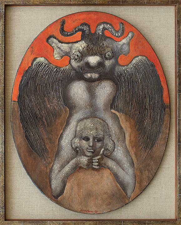 Jan Lebenstein (Brześć Litewski 1930 - Kraków 1999) w latach 1948-1954 studiował malarstwo w ASP w Warszawie pod kierunkiem prof. Eugeniusza Eibischa i Artura Nachta-Samborskiego. W 1955 wziął udział w wystawie w warszawskim Arsenale. Zaprzyjaźniony w czasie studiów z Mironem Białoszewskim, swą pierwszą wystawę indywidualną pokazał w 1956 w Teatrze na Tarczyńskiej. W 1959 zdobył Grand Prix de la Ville de Paris na I Biennale Młodych w Paryżu i w tym roku przeniósł się na stałe do Paryża. Po seriach "figur kreślonych" (na papierze milimetrowym) i "figur hieratycznych" z lat 1955-1958 maluje cykl "figur osiowych" (1958-1962), które wystawia w Paryżu i USA. Równolegle w 1960 zaczyna rysowane "karnety", rodzaj dziennika, który w przyszłości dostarczy motywów wykorzystanych w obrazach. W latach 1964-1965 maluje "Bestiarium", cykl fakturowych, archaizowanych stworów przypominających prehistoryczne wykopaliska. Bezpośrednio po nich wprowadza do swych obrazów postaci ludzkie i fantastyczne, odgrywające sceny ni to mitologiczne, ni to ze snu, często przesycone erotyką. W 1970 projektuje witraże dla Centre du Dialogue w Paryżu. W W 1971 otrzymuje obywatelstwo francuskie 1974 powstają gwasze inspirowane Folwarkiem zwierzęcym George'a Orwella. W latach 1976-1989 tworzy wyłącznie w technice gwaszu i pastelu, podejmując tematykę mitologiczną i zaczerpniętą z Biblii: cykle ilustracji do Księgi Hioba (wyd. 1979) i do Apokalipsy (wyd. 1986) w nowych przekładach Czesława Miłosza. W 1989 powraca do malarstwa olejnego (cykl "Pergamon"). Artysta otrzymał m. in. nagrodę Fundacji im. Alfreda Jurzykowskiego w 1976, Nagrodę Muzeum Archidiecezji Warszawskiej w 1985, Nagrodę im. Jana Cybisa w 1987.