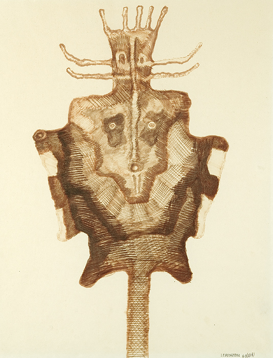 Jan Lebenstein (Brześć Litewski 1930 - Kraków 1999) w latach 1948-1954 studiował malarstwo w ASP w Warszawie pod kierunkiem prof. Eugeniusza Eibischa i Artura Nachta-Samborskiego. W 1955 wziął udział w wystawie w warszawskim Arsenale. Zaprzyjaźniony w czasie studiów z Mironem Białoszewskim, swą pierwszą wystawę indywidualną pokazał w 1956 w Teatrze na Tarczyńskiej. W 1959 zdobył Grand Prix de la Ville de Paris na I Biennale Młodych w Paryżu i w tym roku przeniósł się na stałe do Paryża. Po seriach "figur kreślonych" (na papierze milimetrowym) i "figur hieratycznych" z lat 1955-1958 maluje cykl "figur osiowych" (1958-1962), które wystawia w Paryżu i USA. Równolegle w 1960 zaczyna rysowane "karnety", rodzaj dziennika, który w przyszłości dostarczy motywów wykorzystanych w obrazach. W latach 1964-1965 maluje "Bestiarium", cykl fakturowych, archaizowanych stworów przypominających prehistoryczne wykopaliska. Bezpośrednio po nich wprowadza do swych obrazów postaci ludzkie i fantastyczne, odgrywające sceny ni to mitologiczne, ni to ze snu, często przesycone erotyką. W 1970 projektuje witraże dla Centre du Dialogue w Paryżu. W W 1971 otrzymuje obywatelstwo francuskie 1974 powstają gwasze inspirowane Folwarkiem zwierzęcym George'a Orwella. W latach 1976-1989 tworzy wyłącznie w technice gwaszu i pastelu, podejmując tematykę mitologiczną i zaczerpniętą z Biblii: cykle ilustracji do Księgi Hioba (wyd. 1979) i do Apokalipsy (wyd. 1986) w nowych przekładach Czesława Miłosza. W 1989 powraca do malarstwa olejnego (cykl "Pergamon"). Artysta otrzymał m. in. nagrodę Fundacji im. Alfreda Jurzykowskiego w 1976, Nagrodę Muzeum Archidiecezji Warszawskiej w 1985, Nagrodę im. Jana Cybisa w 1987.