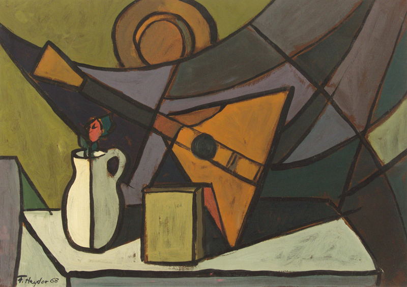 Fryderyk Antoni Hayder (Przemyśl 25 IV 1905 - Gliwice 1994) malarz, grafik; w latach 1925-1933 studiował w ASP w Krakowie - malarstwo w pracowni Józefa Mehoffera, rzeźbę u Xawerego Dunikowskiego, otrzymując dyplom z wyróżnieniem. Od 1935 zamieszkał w Warszawie. Obok malarstwa zajmował się grafiką użytkową i aranżacją wnętrz. Przed wojną brał udział w wystawach m.in. w Zachęcie (1937) i w TPSP w Krakowie (1938). Podczas Powstania Warszawskiego większa część prac uległa zniszczeniu. W 1945 artysta zamieszkał w Gliwicach, uratowane rysunki i szkicowniki z lat 1926-1944, przekazał do Muzeum w Gliwicach, gdzie po wojnie pracował jako kustosz. Współtworzył Gliwicki Oddział ZPAP, uczestniczył w wielu wystawach ogólnopolskich (Wystawa Plastyki Ziem Nadodrzańskich, W-wa 1959; Malarstwo w XV-lecie PRL, W-wa 1961). Miał szereg wystaw indywidualnych. m.in. 1957 CBWA Katowice, Szczecin; w 1984 z okazji 50-lecia pracy twórczej w Muzeum Okręgowym w Przemyślu; 1985 BWA Katowice, 1987 Zachęta Warszawa. Malował kompozycje figuralne, pejzaże, sceny rodzajowe i martwe natury. Po wojnie podejmował tematykę zaangażowana ideologicznie, od połowy lat 50. większą uwagę poświęcił stronie formalnej, malując w konwencji postkubistycznej. Obraz budował za pomocą linearnej siatki grubych konturów, kolor wyważony, rzadko o intensywnym natężeniu kładziony był płasko. Na początku lat 60. malował szereg abstrakcji o charakterze informelowskich, gdzie konstrukcja obrazu uległa zmiękczeniu, by w latach 70. powrócić do konturu wyznaczającego układ form i przestrzeń. Dążył do syntezy, malował dużymi płaszczyznami, upraszczał rysunek. Podejmował tematykę religijną, cykl „Droga Krzyżowa” znajduje się w Muzeum Narodowym Ziemi Przemyskiej w Przemyślu, jego prace są m.in. w zbiorach Muzeum Górnośląskiego w Bytomiu i w Muzeum w Gliwicach.