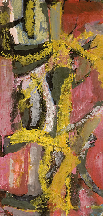 Aleksander Kobzdej (Olesko na Ukrainie 12 IX 1920 - Warszawa 25 IX 1972) od wczesnego dzieciństwa mieszkał we Lwowie, gdzie w 1939 zdał maturę. Równolegle z nauką w szkole średniej uczył się prywatnie rysunku i rzeźby. Jesienią 1939 rozpoczął studia architektoniczne na Politechnice Lwowskiej i jednocześnie zaczął malować pod okiem Władysława Lama. Pod obiema okupacjami, sowiecką i hitlerowską, podejmował prace zarobkowe, kontynuując w miarę możności studia. W 1944 został wywieziony na roboty przymusowe do Wiednia, skąd uciekł do Jugosławii. W 1945 wrócił do kraju. Krótko studiował w ASP w Krakowie u Eugeniusza Eibischa, by już pod koniec 1945 objąć stanowisko asystenta swego dawnego nauczyciela, Władysława Lama, na Wydziale Architektury Politechniki Gdańskiej. Pracując ukończył politechnikę z dyplomem inżyniera i od 1947 zaczął uczyć w PWSSP w Sopocie. Pracował tam do 1951, kiedy to przeniósł się do ASP w Warszawie, gdzie nauczał aż do śmierci. W latach 40. ulegał w swych próbach malarskich wpływom koloryzmu, kierunku triumfującego zarówno w Akademii krakowskiej, gdzie zaczynał studia, jak i w „szkole sopockiej“, w której sam uczył. Koloryzm Kobzdeja był jednakże poddany dyscyplinie skupionej, syntetycznej formy o rodowodzie sięgającym kubizmu i ekspresjonizmu. W pierwszej połowie lat 50. Kobzdej należał do koryfeuszy socrealizmu. Na ile artysta nie unikał, nawet w tym czasie, ironicznej refleksji, świadczy dyptyk złożony z obrazów Podaj cegłę i Ceglarki, w którym skonfrontował postulatywną i rzeczywistą stronę trudu codziennej pracy. W latach 50. rozwinął też swój talent rysownika, tworząc cykle reportażowych notatek z podróży do Chin i Wietnamu. Od 1956 radykalnie zmienił styl, doświadczając odtąd rozmaitych odmian informelu i malarstwa materii. Eksperymentując z fakturą i przestrzenią doszedł do swego głównego motywu, m stał się wielki cykl „Szczelin“, tworzonych od 1966. Ich syntezą stały się obiekty malarskie zwane „Hors cadre“.