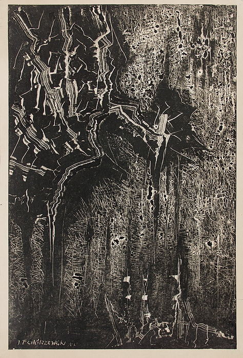 Jerzy Tchórzewski w czasie wojny walczył w AK. Studiował w ASP w Krakowie w latach 1946-1951. W czasie studiów związał się z kręgiem Grupy Krakowskiej. Debiutował na I Wystawie Sztuki Nowoczesnej w Krakowie w 1948, w 1955 uczestniczył w wystawie w warszawskim Arsenale, gdzie zdobył nagrodę. W tym czasie mieszkał już w Warszawie, gdzie w 1954 podjął pracę pedagogiczną w ASP (przeszedł na emeryturę w 1998). Już od wczesnego, figuratywnego okresu twórczości (1948-1955), kiedy umieszczał postaci i fantastyczne stwory w wyimaginowanych pejzażach, odznaczał się zainteresowaniami i typem wyobraźni bliskiej surrealizmowi. W drugiej połowie 50. zaczął malować abstrakcyjne obrazy nasuwające na myśl kosmiczne kataklizmy i erupcje materii, rozjaśniane poszarpanymi liniami błyskawic kontrastujących z ciemnym tłem. Niekiedy w jego kompozycjach pojawiały się kształty ludzkie i zwierzęce. Zbieżność surrealizujących wizji Tchórzewskiego z równoległymi tendencjami malarstwa informel sprawiła, że w 1959 stowarzyszył się z międzynarodowym ruchem artystycznym Phases. W późniejszych latach artysta komplikował fakturę obrazów, wykorzystując m.in. właściwości schnięcia grubej warstwy farby, a w przypadku gwaszy - efekty zmiętego papieru. Od końca lat 70. podejmował chętnie tematykę religijną. Apogeum tego nurtu przypadło na lata 80., kiedy artysta związał się z niezależnym ruchem artystycznym, wystawiając często w kościołach i na pokazach prywatnych. W 1986 otrzymał niezależną Nagrodę im. Jana Cybisa.