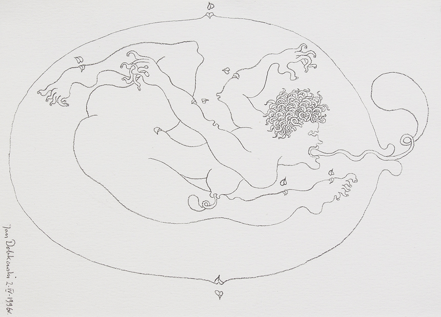 Jan Dobkowski (Łomża 1942, mieszka w Warszawie) studiował w latach 1962-1968 na Wydziale Malarstwa warszawskiej ASP pod kierunkiem prof. Juliusza Studnickiego i Jana Cybisa. Będąc jeszcze na studiach, w 1966, utworzył duet artystyczny, w którym jego partnerem był Jerzy (Jurry) Zieliński. Ich pierwsza wspólna wystawa pn. Neo-Neo-Neo odbyła się w Warszawie w 1967. Wystawiali wspólnie do 1970. W 1968 powstały pierwsze zielono-czerwone obrazy Dobkowskiego (używającego w tym czasie pseudonimu Dobson). W pracach tych, operujących giętkimi, falistymi liniami, w których upatrywano wpływów secesji, artysta używał sposobów rodem z op-artu dla wywołania złudzeń optycznych (wirowanie, mżenie, pozorny ruch form). Równolegle z obrazami tworzył też formy z płyt i folii do montowania w przestrzeni. Złoty medal na Sympozjum Złotego Grona w Zielonej Górze w 1971 i blisko roczny pobyt w USA na stypendium Fundacji Kościuszkowskiej w 1972 to kolejne etapy pełnej sukcesów kariery malarza. Wyraźną zmianę nastroju i wymowy jego prac przyniosły wydarzenia 1980-1981 roku, zwłaszcza wprowadzenie stanu wojennego. Monochromatyczne, ciemne płótna znaczył wtedy nikłymi, wiotkimi liniami rysunku. Najczęstszym motywem były patriotyczne i religijne symbole, dopowiadane tytułami nawiązującymi do realiów czasu. Kolejna radykalna zmiana nastąpiła ok. 1990. Symbolicznym zwiastunem nowego okresu stał się olbrzymi, radosny, eksplodujący bogactwem barw, kształtów i ruchu obraz ...a życie sobie płynie... (394 x 588 cm) z 1990-1991. Podobne cechy formalne charakteryzują twórczość artysty w całej dekadzie lat 90. Równolegle z malarstwem Dobkowski pracuje nad rysunkiem, będącym bardzo ważnym dopełnieniem jego twórczości.