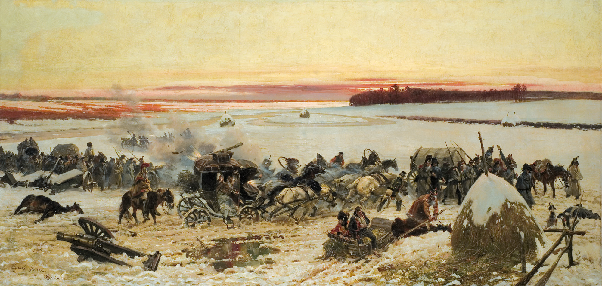 Obraz powstał w związku z przygotowaniami do pracy nad Berezyną, panoramą przedstawiającą dramatyczny odwrót wojsk napoleońskich spod Moskwy i ich przejście przez Berezynę w dniu 28 listopada 1812.