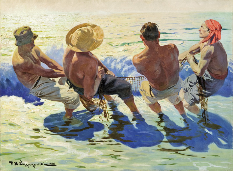 Feliks Michał Wygrzywalski (Przemyśl 1875 - okolice Rzeszowa 1944) w latach 1893-98 studiował w ASP w Monachium pod kierunkiem J.C.Hertericha i K.Marra. Studia uzupełniał w Académie Julian w Paryżu. Już w czasie studiów wyjeżdżał do Włoch, a po 1900 przez kilka lat mieszkał w Rzymie. W 1906 podróżował do Egiptu. W 1908 na stałe osiadł we Lwowie. W latach 1909-14 pracował w tamtejszym teatrze jako inspektor sceny. Jeszcze kilkakrotnie podróżował do Włoch. Był malarzem realistą; we wcześniejszym okresie twórczości skłaniał się ku naturalizmowi i silnej ekspresji. Dużą wagę przywiązywał do efektów świetlnych, stosował bogatą, żywą gamę barwną. We wczesnych obrazach często przedstawiał ludzką pracę (Burłacy) lub dramatyczne wydarzenia i napięcia społeczne (Strajk, Chleba nam głodnym). Malował też portrety, akty, pejzaże nadmorskie, krajobrazy z Włoch i Ukrainy. Po podróży do Egiptu w jego malarstwie powtarzały się motywy i tematy orientalne (Modlitwa Arabów, Sprzedawcy dywanów). Zajmował się dekoracyjnym malarstwem ściennym, m.in. w 1908 zaprojektował, a później wykonał alegoryczne malowidła do gmachu Izby Handlowo-Przemysłowej we Lwowie. Zajmował się grafiką, ilustrował książki i czasopisma, projektował witraże, kostiumy i dekoracje teatralne (m.in. do Peer Gynta, Irydiona, Nocy listopadowej).