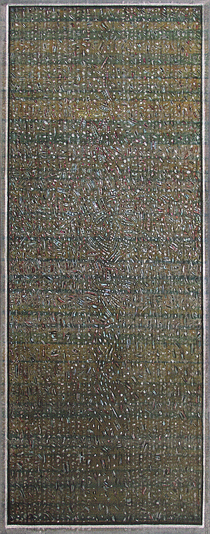 Bogusław Szwacz (Leżajsk 27 III 1912 – Warszawa 24 II 2009) studiował malarstwo na ASP w Krakowie, którą ukończył z wyróżnieniem w 1937. W czasie studiów odbył służbę w Szkole Podchorążych Rezerwy na kresach oraz podróż studyjną do Wiednia. Lata wojny przetrwał we Lwowie, kolejno pod okupacją sowiecką i niemiecką. W 1944 ewakuowany z Niemcami do Krakowa, osiadł w Tyńcu, gdzie powstał cykl pejzażowych akwarel. Po wojnie włączył się w organizowanie życia artystycznego, w 1946 podjął pracę pedagogiczną w krakowskiej ASP. W 1946 wystawiał z Grupą Młodych Plastyków Kantora. W 1947/48 wyjechał na stypendium do Paryża, gdzie przystąpił do grupy „Le Surréalisme Révolutionnaire", współredagował jej dwumiesięcznik. W 1948 przeniósł się do Warszawy, gdzie związał się z Klubem Młodych Artystów i Naukowców. Okres działalności w ruchu awangardy powojennej zamknął udziałem w I Wystawie Sztuki Nowoczesnej w Krakowie na przełomie 1948/49. Od końca 1949 pracował w warszawskiej PWSSP, a po jej połączeniu się z ASP w 1950 rozpoczął wieloletnią karierę pedagogiczną w tej uczelni, trwającą do emerytury w 1982. W latach socrealizmu uczestniczył we wszystkich Ogólnopolskich Wystawach Plastyki (1950, 1951/52, 1952/53, 1954) i w innych oficjalnych wystawach. Jego wystawa indywidualna w marcu 1955 była jedną z pierwszych wystaw sztuki abstrakcyjnej. W tym czasie artysta zaczął formułować własną teorię sztuki, której pozostaje wierny do dziś. Koncepcja Ars-Horme (Sztuki Poruszania Wyobraźni) konkretyzuje się w obrazach, których odmiany określają terminy ars-hormegram, ars-hormegraf i ars-hormegryf. Są to kompozycje budowane z drobnych form, których rytmy i zagęszczenia na płaszczyźnie są dodatkowo akcentowane fakturą i kolorem. Teoria Ars-Horme stała też u podstaw metody dydaktycznej Szwacza, który od lat 60. uczył rysunku na Wydziale Rzeźby. Od końca lat 50. artysta uczestniczył w wielu wystawach ruchu awangardowego, m.in. w II i III Wystawie Sztuki Nowoczesnej w Warszawie (1957 i 1959), „Konfrontacjach“ w Galerii Krzywe Koło, Warszawa 1962 i 1963, I Biennale Form Przestrzennych w Elblągu (1965), sympozjach Złotego Grona w Zielonej Górze (1973, 1976), plenerach w Osiekach (1964, 1976, 1977, 1978, 1984). Oprócz malarstwa i rysunku artysta zajmował się muzyką (grał na skrzypcach), a od lat 80. również poezją (wybór z kilku tysięcy sonetów wydał w 1988 w dwu tomikach).