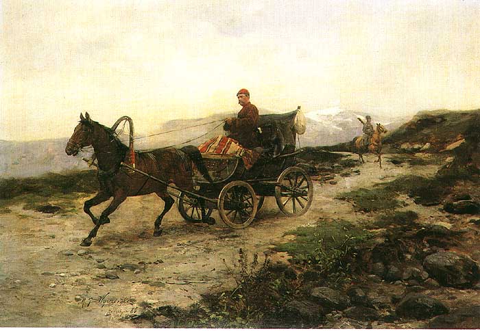 Michał Gorstkin Wywiórski (Warszawa 1861 - Berlin 1926) w latach 1883-1887 studiował w Monachium; w Akademii u profesorów Karla Raupa i Nikolausa Gysisa oraz równolegle w prywatnych pracowniach Józefa Brandta i Alfreda Wierusza-Kowalskiego. W 1884 debiutował na wystawie w krakowskim TPSP, swoje prace pokazywał też w Monachium, gdzie w 1894 na międzynarodowej wystawie w Glaspalast został wyróżniony medalem za obraz Z puszczy litewskiej. W 1895 przeniósł się do Berlina, zaproszony przez Wojciecha Kossaka i Juliana Fałata do pracy przy panoramie Berezyna (1895-1896). W Berlinie zamieszkał na dłużej, a następnie przebywał w Wielkopolsce i w Warszawie. Współpracował też z Janem Styką przy panoramie Bitwa pod Sybinem (1897), a w 1900 wspólnie z Kossakiem podróżował do Hiszpanii i Egiptu, aby wykonać szkice plenerowe do zamierzonych panoram Somosierra (nie zrealizowana) i Bitwa pod piramidami (1901). Wyjeżdżał także na Litwę, wyspę Sylt, do Norwegii, Szwecji, nad Morze Północne i Bałtyk, malował w Amsterdamie, na Krymie i Kaukazie. We wczesnej fazie twórczości, pod silnym wpływem Brandta i Wierusza-Kowalskiego, malował sceny myśliwskie i rodzajowe oraz obrazy z Tatarami, Kozakami czy Czerkiesami, które przyniosły mu powodzenie na monachijskim rynku sztuki. Z czasem naczelnym tematem jego malarstwa stał się czysty pejzaż, postrzegany i malowany wrażliwie i z upodobaniem.