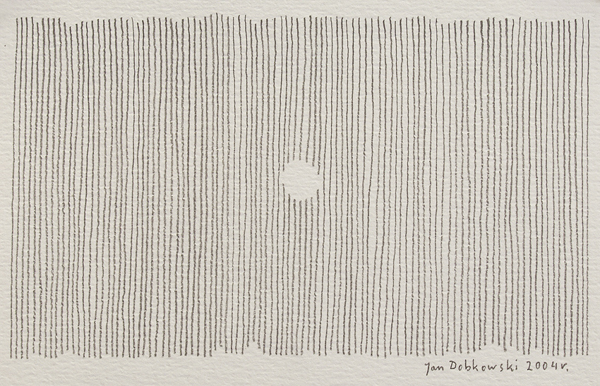 Jan Dobkowski (Łomża 1942, mieszka w Warszawie) studiował w latach 1962-1968 na Wydziale Malarstwa warszawskiej ASP pod kierunkiem prof. Juliusza Studnickiego i Jana Cybisa. Będąc jeszcze na studiach, w 1966, utworzył duet artystyczny, w którym jego partnerem był Jerzy (Jurry) Zieliński. Ich pierwsza wspólna wystawa pn. Neo-Neo-Neo odbyła się w Warszawie w 1967. Wystawiali wspólnie do 1970. W 1968 powstały pierwsze zielono-czerwone obrazy Dobkowskiego (używającego w tym czasie pseudonimu Dobson). W pracach tych, operujących giętkimi, falistymi liniami, w których upatrywano wpływów secesji, artysta używał sposobów rodem z op-artu dla wywołania złudzeń optycznych (wirowanie, mżenie, pozorny ruch form). Równolegle z obrazami tworzył też formy z płyt i folii do montowania w przestrzeni. Złoty medal na Sympozjum Złotego Grona w Zielonej Górze w 1971 i blisko roczny pobyt w USA na stypendium Fundacji Kościuszkowskiej w 1972 to kolejne etapy pełnej sukcesów kariery malarza. Wyraźną zmianę nastroju i wymowy jego prac przyniosły wydarzenia 1980-1981 roku, zwłaszcza wprowadzenie stanu wojennego. Monochromatyczne, ciemne płótna znaczył wtedy nikłymi, wiotkimi liniami rysunku. Najczęstszym motywem były patriotyczne i religijne symbole, dopowiadane tytułami nawiązującymi do realiów czasu. Kolejna radykalna zmiana nastąpiła ok. 1990. Symbolicznym zwiastunem nowego okresu stał się olbrzymi, radosny, eksplodujący bogactwem barw, kształtów i ruchu obraz ...a życie sobie płynie... (394 x 588 cm) z 1990-1991. Podobne cechy formalne charakteryzują twórczość artysty w całej dekadzie lat 90. Równolegle z malarstwem Dobkowski pracuje nad rysunkiem, będącym bardzo ważnym dopełnieniem jego twórczości.