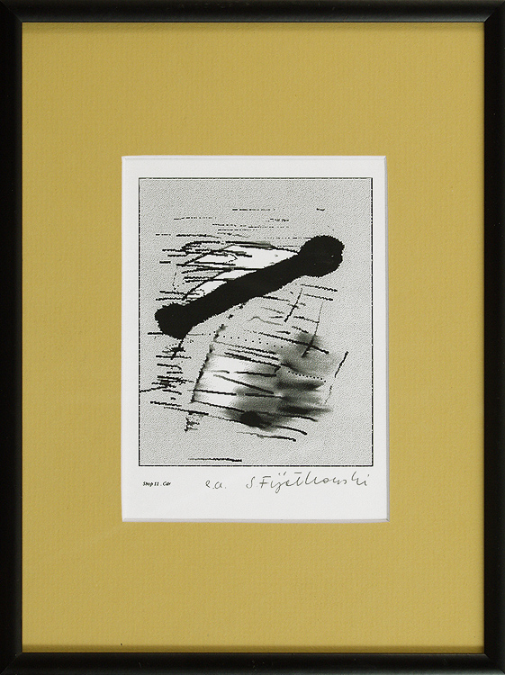 Stanisław Fijałkowski (Zdołbunow na Wołyniu 1922 - Łódź 2020) w latach 1944-1945 przebywał na robotach przymusowych w Królewcu. W latach 1946- 1951 studiował w Państwowej Wyższej Szkole Sztuk Plastycznych w Łodzi pod kierunkiem Władysława Strzemińskiego, Stefana Wegnera i Ludwika Tyrowicza, u którego uzyskał dyplom. W latach 1947-1993 był pedagogiem w macierzystej uczelni, od 1983 profesorem. Pełnił funkcje prorektora i dziekana Wydziału Grafiki. Wykładał też za granicą: w Mons (1978, 1982), Giessen (1989-1990), Marburgu (1990). Jest wiceprezydentem Międzynarodowego Stowarzyszenia Drzeworytników XYLON w Szwajcarii i przewodniczącym Polskiej Sekcji tej organizacji. Należy do zagranicznych Akademii nauk i sztuk w Salzburgu i Brukseli. Jest laureatem Nagrody Krytyki Artystycznej im. Cypriana Norwida 1971, Nagrody im. Jana Cybisa 1990 i wielu innych wyróżnień. Jako pierwszy w Polsce przetłumaczył teksty Wasyla Kandinskiego („Punkt i linia a płaszczyzna” i „O duchowości w sztuce”), oba wydane drukiem, oraz Kazimierza Malewicza „Świat bezprzedmiotowy”. Malarstwo Fijałkowskiego bazuje na skromnym zasobie abstrakcyjnych znaków i ograniczonej gamie barwnej. Kompozycje, w większości sugerujące ujęcia pejzażowe czy szerzej – przestrzenne, budowane są jakby pojedynczymi dotknięciami pędzla. Każdy szczegół nabiera ważności, śledzi się każdy niuans barwy czy faktury. Charakterystyczne kształty i motywy powtarzają się w różnych konfiguracjach w pracach artysty niczym wyrazy, z których układa za każdym razem inną opowieść. Obrazy noszą zazwyczaj poetyckie tytuły, często wpadające w tony groteskowe czy surealistyczne. Cechy te składają się na niezwykłe, intrygujące, autonomiczne zjawisko artystyczne. Malarstwu Fijałkowskiego od początku lat 60. towarzyszy czarno-biała grafika, głównie linoryt i drzeworyt, sporadycznie litografia.