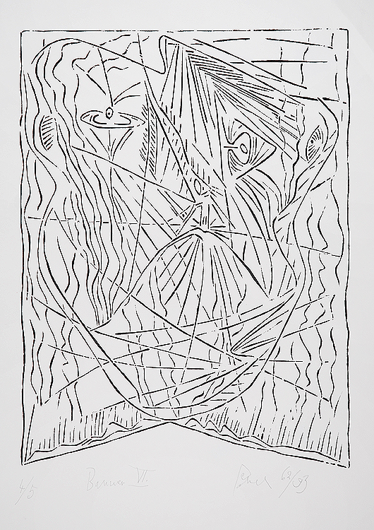 Jerzy Panek (Tarnów 1918 - Kraków 2001) odbył studia graficzne w Państwowym Instytucie Sztuk Plastycznych w Krakowie (1937-1939). Kontynuował je w Kunstgewerbeschule (1940-1942), a następnie na Wydziale Malarstwa ASP w Krakowie (1945-1948, dyplom 1955). W 1955 odbył podróż do Chin. Przez rok uczył rysunku i malarstwa na Wydziale Form Przemysłowych ASP w Krakowie (1967-1968). Od początku lat 50. skupił się na technice drzeworytu, którą traktował niekonwencjonalnie, mianowicie jako okazję do pracy na pograniczu rzeźby. Klocki drzeworytnicze Panka odznaczały się nie tylko wielkimi rozmiarami, ale i tym, że ich "powierzchnie drukujące" zredukowane były do syntetycznych, oszczędnych zarysów kształtów na szerokich obszarach bieli. Tematyka jego drzeworytów obracała się wokół ludowych, wiejskich i małomiasteczkowych spraw i klimatów. Artysta szczególnie chętnie portretował zwierzęta. Jako grafik zyskał międzynarodową renomę i wiele nagród. W latach 70. zajął się w szerszym zakresie malarstwem, tworząc serie "Autoportretów", nacechowanych rubaszną autoironią.