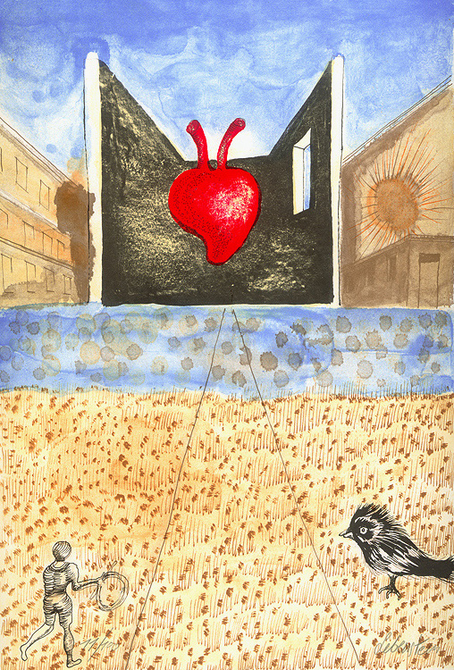Jan Lebenstein (Brześć Litewski 1930 - Kraków 1999) w latach 1948-1954 studiował malarstwo w ASP w Warszawie pod kierunkiem prof. Eugeniusza Eibischa i Artura Nachta-Samborskiego. W 1955 wziął udział w wystawie w warszawskim Arsenale. Zaprzyjaźniony w czasie studiów z Mironem Białoszewskim, swą pierwszą wystawę indywidualną pokazał w 1956 w Teatrze na Tarczyńskiej. W 1959 zdobył Grand Prix de la Ville de Paris na I Biennale Młodych w Paryżu i w tym roku przeniósł się na stałe do Paryża. Po seriach "figur kreślonych" (na papierze milimetrowym) i "figur hieratycznych" z lat 1955-1958 maluje cykl "figur osiowych" (1958-1962), które wystawia w Paryżu i USA. Równolegle w 1960 zaczyna rysowane "karnety", rodzaj dziennika, który w przyszłości dostarczy motywów wykorzystanych w obrazach. W latach 1964-1965 maluje "Bestiarium", cykl fakturowych, archaizowanych stworów przypominających prehistoryczne wykopaliska. Bezpośrednio po nich wprowadza do swych obrazów postaci ludzkie i fantastyczne, odgrywające sceny ni to mitologiczne, ni to ze snu, często przesycone erotyką. W 1970 projektuje witraże dla Centre du Dialogue w Paryżu. W W 1971 otrzymuje obywatelstwo francuskie 1974 powstają gwasze inspirowane Folwarkiem zwierzęcym George'a Orwella. W latach 1976-1989 tworzy wyłącznie w technice gwaszu i pastelu, podejmując tematykę mitologiczną i zaczerpniętą z Biblii: cykle ilustracji do Księgi Hioba (wyd. 1979) i do Apokalipsy (wyd. 1986) w nowych przekładach Czesława Miłosza. W 1989 powraca do malarstwa olejnego (cykl "Pergamon"). Artysta otrzymał m. in. nagrodę Fundacji im. Alfreda Jurzykowskiego w 1976, Nagrodę Muzeum Archidiecezji Warszawskiej w 1985, Nagrodę im. Jana Cybisa w 1987.