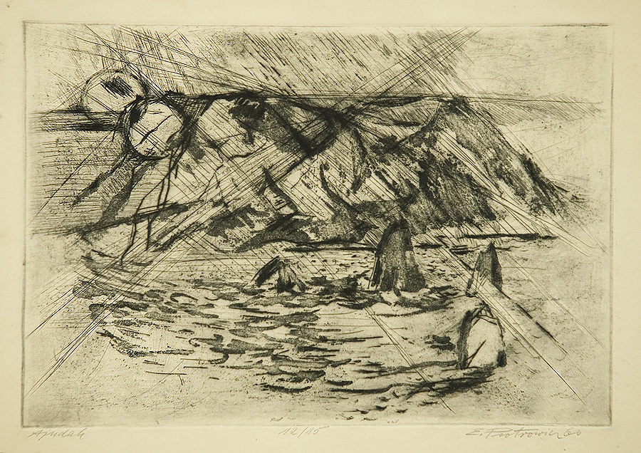 Edmund Piotrowicz (7 VIII 1915 Chersoń, Rosja - 1 II 1991 Warszawa) studiował w ASP w Warszawie (1945-1950, dyplom 1953). Pracował jako pedagog w Państwowym Liceum Technik Teatralnych w Warszawie (1951-1965, dyrektor 1964-1965) oraz na Wydziale Sztuk Pięknych Uniwersytetu Mikołaja Kopernika w Toruniu (od 1962, kierownik Katedry, następnie Zakładu Grafiki, profesor 1973). W latach 1960-1972 regularnie wystawiał na Biennale (od 1966 Międzynarodowym) Grafiki w Krakowie. Brał udział w licznych innych wystawach zbiorowych w kraju i za granicą, miał też wiele wystaw indywidualnych. Działał w ZPAP, był członkiem Stowarzyszenia Marynistów Polskich (od 1968). Laureat Nagrody Ministra Handlu Zagranicznego za twórczość marynistyczną w 1974. Uprawiał grafikę warsztatową (techniki metalowe, głównie sucha igła) i malarstwo. Znany był szczególnie z kompozycji marynistycznych w technice czarno-białej i jednobarwnej suchej igły, takich jak "Dziewięć w skali Beauforta", "Słońce" i in.