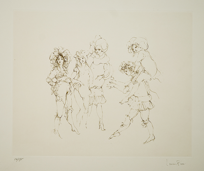 Leonor Fini, z pochodzenia Argentynka, niemal całe życie spędziła we Francji. Nie ukończyła żadnej szkoły artystycznej. W młodości fascynowała się twórczością prerafaelitów, Aubreya Beardsleya i Gustava Klimta. Jej pierwsza wystawa w Paryżu w 1935 zainteresowała surrealistów, poznała Paula Eluarda, Maxa Ernsta, René Magritte’a i Victora Braunera. Odtąd uczestniczyła w niektórych wystawach ruchu surrealistycznego. Interesowała ją biologiczna wegetacja, rytmy przyrody, przemijanie, dla których znajdowała symboliczny wyraz w pracach z późnych lat 40. Od początku aktualnym wątkiem jej twórczości, który od lat 60. zawładnął nią niemal niepodzielnie, był obsesyjny erotyzm, symbolizowany zwłaszcza przez zmysłowe koty-sfinksy. Kocie twarze i sylwetki miały też postaci malowanych przez nią kobiet, nimf, bohaterek mrocznych i wyrafinowanych dramatów. Ważnym wątkiem jej twórczości były portrety o zamglonym, sennym wyrazie. Była żoną Konstantego Jeleńskiego (1922-1987).