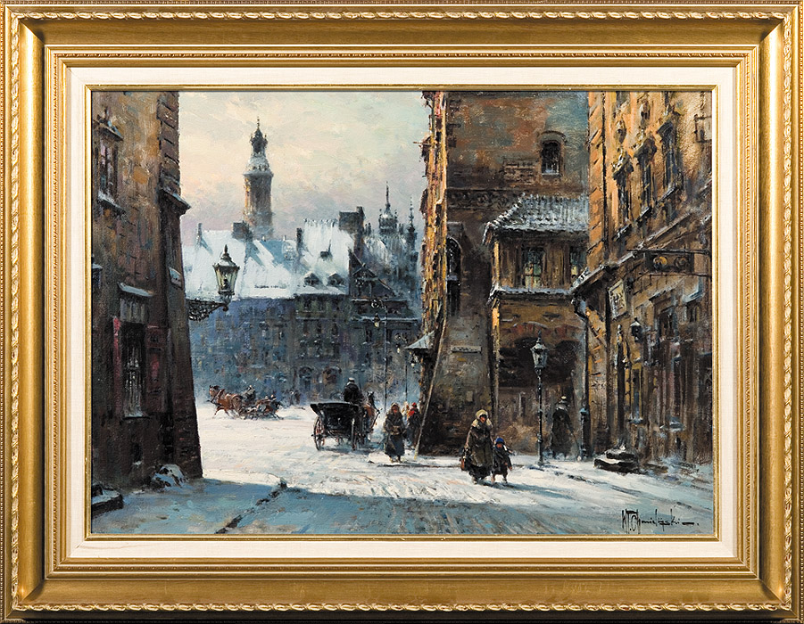 Władysław Chmieliński (Warszawa 1911 - Warszawa 1979) był malarzem związanym z Warszawą, gdzie stale mieszkał i pracował. W latach 1926-1931 studiował w warszawskiej Miejskiej Szkole Sztuk Zdobniczych i Malarstwa (dawna Klasa Rysunkowa). Wiodącym tematem jego obrazów były widoki miejskie, malowane olejno i akwarelą. W latach 1935-1938 stworzył cykl akwarel przedstawiających obiekty polskiej architektury; wśród nich, widoki Sandomierza, Krakowa, Kazimierza nad Wisłą, a także wnętrza zabytkowych kościołów czy pałaców, m.in. Zamku Królewskiego w Warszawie i Pałacu w Wilanowie. Malował także pejzaże i wiejskie sceny rodzajowe – kuligi, sanny, zaprzęgi, wesela, konie na tle krajobrazu. W latach 1967-1969 wyjeżdżał na dłuższe pobyty do Danii. W latach 1936-1939 artysta używał także pseudonimu „Władysław Stachowicz”.