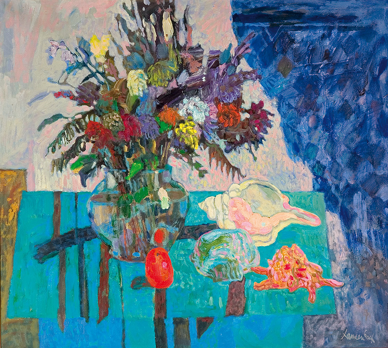 Jan Szancenbach (Kraków 1928 - Kraków 1998) studiował w latach 1940-1942 w Kunstgewerbeschule (czyli ASP zdegradowanej przez okupanta do roli szkoły zawodowej) pod kierunkiem m.in. Stanisława Kamockiego, Józefa Mehoffera, Andrzeja Jurkiewicza. Po zamknięciu uczelni, w latach 1942-1945 pracował zarobkowo i samodzielnie studiował. W 1945 został przyjęty ponownie na II rok studiów, które ukończył pod kierunkiem Eugeniusza Eibischa w 1948 (dyplom uzyskał w 1952). Od 1948 pracował jako asystent w macierzystej pracowni oraz w pracowni liternictwa i projektowania graficznego Ludwika Gardowskiego. Przeszedł wszystkie szczeble kariery akademickiej, od asystenta do profesora zwyczajnego (od 1986). Od 1972 prowadził własną katedrę na Wydziale Malarstwa. W latach 1987-1993 przez dwie kadencje był rektorem ASP w Krakowie. Jako malarz pozostawał wierny szkole koloryzmu polskiego, którego zasady przyswoił sobie w trakcie studiów u Eibischa. Jego malarstwo jest pełne światła i nasyconych barw, radosne, wręcz feeryczne. Obok wybitnych walorów kolorystycznych (zwłaszcza w czerwieniach malarz osiągał niezwykłą skalę odmian i odcieni) nie stroni od dekoratywizmu, co razem składa się na hedonistyczny, beztroski wyraz. Znany przede wszystkim jako twórca martwych natur, pejzaży, scen w ogrodach, Szancenbach zajmował się również malarstwem monumentalnym. Pracował m. in. przy renowacji Teatru im. Słowackiego w Krakowie oraz widowni i plafonu Opery we Wrocławiu. Innym wątkiem jego sztuki było projektowanie graficzne (znaki firmowe, plakaty, okładki, opakowania, etykiety, znaczki pocztowe itp.), zajmował się również ilustracją książkową i filmem rysunkowym.