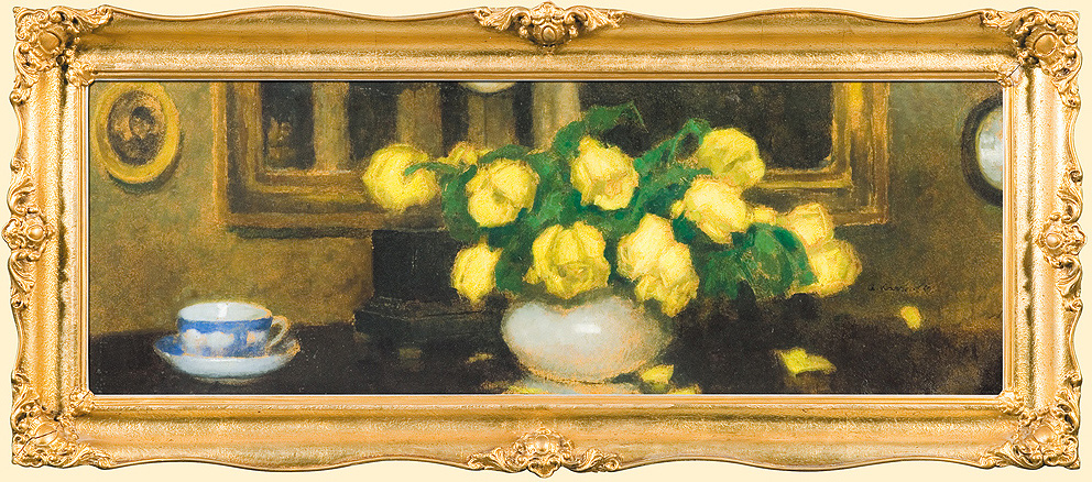 Alfons Karpiński (Rozwadów, dziś dzielnica Stalowej Woli 1875 - Kraków 1961) w latach 1891-1899 studiował w krakowskiej Szkole Sztuk Pięknych pod kierunkiem Floriana Cynka, Izydora Jabłońskiego, Władysława Łuszczkiewicza i Leona Wyczółkowskiego, a następnie kształcił się jeszcze u Antona Ažbégo w Monachium (1903), u Kazimierza Pochwalskiego w Wiedniu, a od 1907 także w Paryżu. Podróżował do Włoch i Londynu. Stale mieszkał w Krakowie; związany z tamtejszym środowiskiem skupionym wokół „Zielonego Balonika” projektował dekoracje do przedstawień kabaretu. Należał do Tow. Artystów Polskich „Sztuka”, grupy „Zero”, był członkiem wiedeńskiego stowarzyszenia „Secesja” i krakowskiego TPSP. Uczestniczył w wielu wystawach w kraju i za granicą. W czasie I wojny światowej służył w armii austriackiej. Na bogatą twórczość artysty składają się wczesne sceny rodzajowe z podkrakowskiej wsi, pejzaże i portrety, wśród nich zwłaszcza portrety kobiece, które przyniosły mu szczególną popularność. Z czasem głównym – obok portretu – tematem jego obrazów stały się martwe natury z kwiatami, dekoracyjne kompozycje o stonowanej gamie barwnej. Artysta zajmował się także grafiką i ilustratorstwem.
