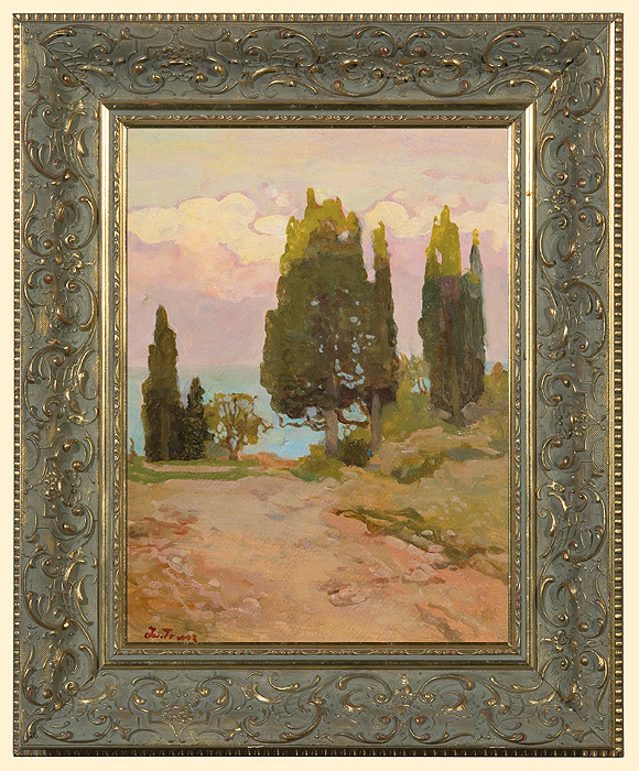 Iwan Trusz (Wysocko 1869 - Lwów 1941) studiował w Krakowskiej Szkole Sztuk Pięknych u I. Jabłońskiego, W. Łuszczkiewicza, J. Unierzyskiego, L. Loefflera, a w latach 1895-97 także u L. Wyczółkowskiego i w pracowni pejzażu J. Stanisławskiego. W 1894 wyjechał do Wiednia i jako wolny słuchacz przez kilka tygodni uczęszczał do tamtejszej ASP. W 1897 równie krótko uczył się w prywatnej szkole A. Ažbego w Monachium. Po studiach wiele podróżował - dwukrotnie, w 1902 i 1908 był we Włoszech, później też w Palestynie i Egipcie, w 1901 i 1902 jeździł na Krym, podróżował po Ukrainie. Stale mieszkał we Lwowie, gdzie w dawnym domu artysty znajduje się obecnie poświęcone mu muzeum. Był przede wszystkim pejzażystą - malował krajobrazy z dalekich podróży oraz nastrojowe pejzaże z Ukrainy. Tworzył także portrety i rodzajowe sceny o tematyce huculskiej. Uprawiał ilustratorstwo, współpracował z ukraińskim teatrem we Lwowie. Zajmował się krytyką artystyczną, pisując artykuły do ukraińskich czasopism „Buducznist“, „Literaturno-Naukowyj Wistnik“, „Artystycznyj Wistnik“ i pracując przy ich redakcji.