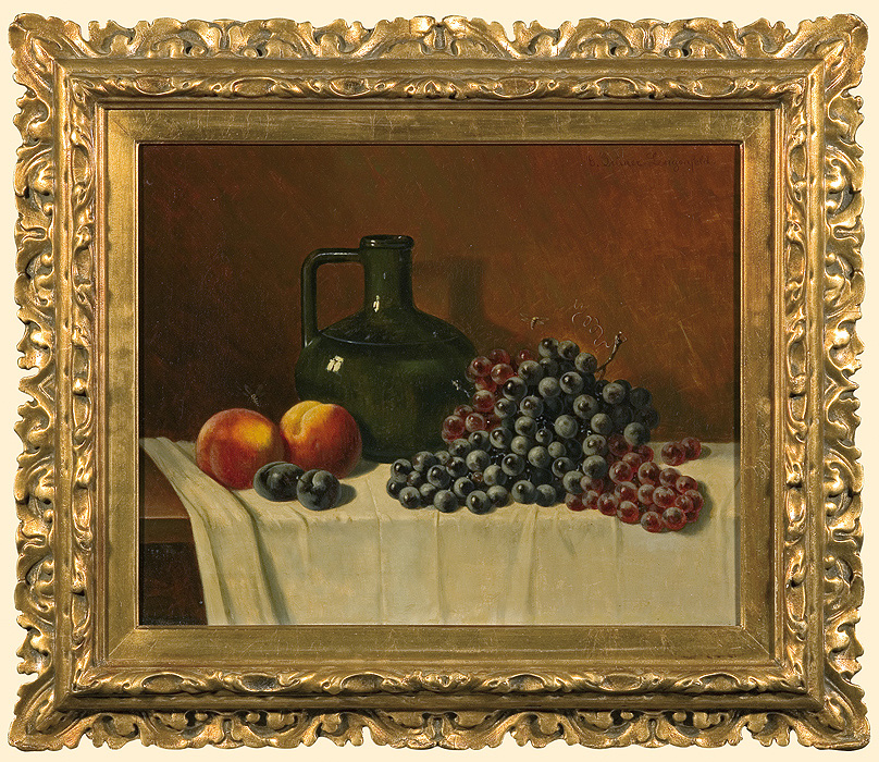 E.Grüner-Lengenfeld - (czynny na przełomie XIX i XX w.)malarz niemiecki, działający na przełomie XIX/XX w. Znane są jego martwe natury, które - podobnie jak i nasz obraz - przedstawiają delikatnie i łudząco realistycznie malowane owoce: brzoskwinie, śliwki, czasem orzechy laskowe obok ceramicznych dzbanów, szklanych pucharów z winem czy kieliszków szampana.