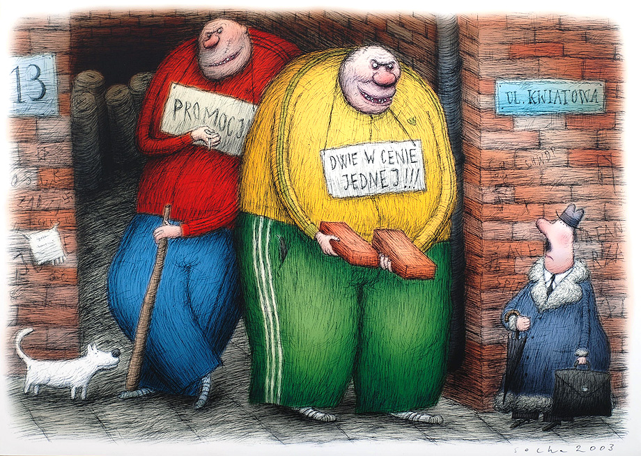 Piotr Socha studiował na Akademii Sztuk Pięknych w Warszawie na wydziale Grafiki i w Pracowni Malarstwa Ściennego na Wydziale Malarstwa, dyplom uzyskując w Pracowni Ilustracji Ksiązkowej u prof. Janusza Stannego. Współpracuje w charakterze ilustratora z redakcjami gazet codziennych i magazynów oraz jako projektant oprawy graficznej z TV. W 2000 roku otrzymał nagrodę Złotego Orła w kategorii Rozwoju Mediów.