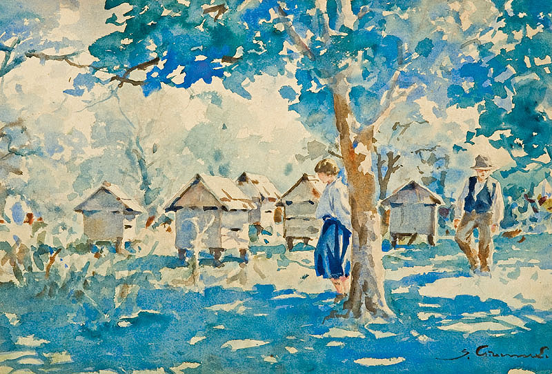 Stanisław Gibiński (Rzeszów 1882 – Katowice 1971) od wczesnej młodości pracował na kolei, początkowo w Rzeszowie, następnie w Krakowie, gdzie równocześnie mógł podjąć naukę w Akademii Sztuk Pięknych, prawdopodobnie jako wolny słuchacz. W czasie I wojny światowej służył w II Brygadzie Legionów dowodzonej przez J. Hallera i odbył kampanię w Karpatach, walcząc pod Rafajłową, Mołodecznem, Przełęczą Pantyrską. Po wojnie nadal pracował na kolei, łącząc pracę zawodową z twórczością plastyczną. Był malarzem akwarelistą; malował pejzaże, wiejskie sceny rodzajowe, rybaków czy polowania, które najczęściej przedstawiał w śnieżnym, zimowym pejzażu. Sam często uczestniczył w polowaniach i ten temat znał doskonale. Malował też moczary, rozlewiska, krajobrazy jesienne. W jego malarstwie wyraźnie widoczne są inspiracje sztuką Fałata, ale też Wyczółkowskiego i malarzy krakowskiej szkoły pejzażu. Artysta wielokrotnie uczestniczył w wystawach krakowskiego TPSP, a po 1926 także w wystawach „Niezależnych“. Wystawiał też i w innych miastach, a jego sztuka cieszyła się znacznym powodzeniem