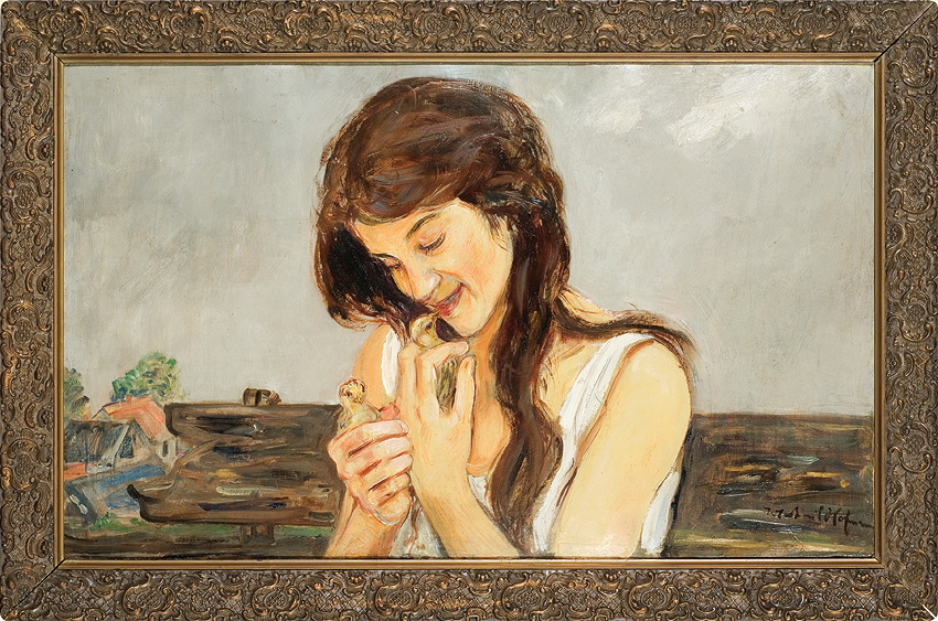 Wlastimil Hofman / Vlastimil Hofmann (Praga 1881 - Szklarska Poręba 1970) studiował w krakowskiej Szkole Sztuk Pięknych - początkowo pod kierunkiem Floriana Cynka, później także u Jana Stanisławskiego, Leona Wyczółkowskiego i Jacka Malczewskiego. W latach 1899-1902 uczył się jeszcze u Jeana Léona Gérôme’a w paryskiej École des Beaux-Arts. W czasie I wojny światowej przebywał w Pradze i w Paryżu; od 1920 stale mieszkał w Krakowie. Dużo wystawiał; należał do wielu stowarzyszeń twórczych - był współzałożycielem „Grupy Pięciu” (1905) i „Grupy Zero” (1908), członkiem Związku Artystów Czeskich „Manes”, a od 1911 członkiem Tow. Artystów Polskich „Sztuka”. W czasie II wojny światowej poprzez ZSRR i Turcję przedostał się do Jerozolimy, skąd w roku 1946 wrócił do Krakowa. Od roku 1947 stale mieszkał w Szklarskiej Porębie. Hofman malował przede wszystkim fantastyczno-symboliczne kompozycje o motywach ludowych oraz sceny rodzajowe, portrety i pejzaże. Jego obrazy mimo bliskich analogii i powiązań ze sztuką Malczewskiego odznaczają się zawsze indywidualnym charakterem, stylem i nastrojem.