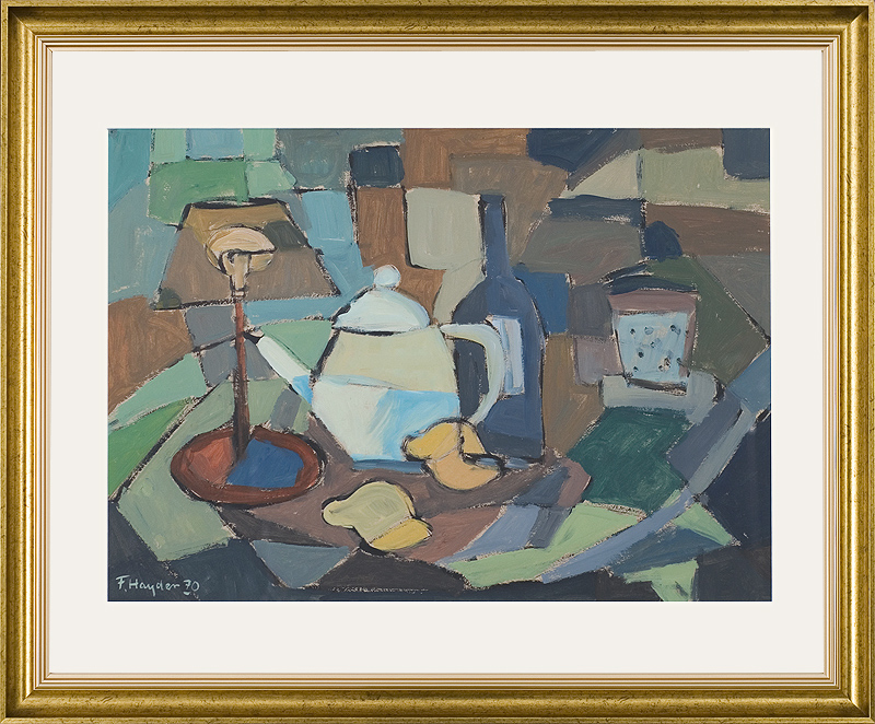 Fryderyk Antoni Hayder (Przemyśl 25 IV 1905 - Gliwice 1994) malarz, grafik; w latach 1925-1933 studiował w ASP w Krakowie - malarstwo w pracowni Józefa Mehoffera, rzeźbę u Xawerego Dunikowskiego, otrzymując dyplom z wyróżnieniem. Od 1935 zamieszkał w Warszawie. Obok malarstwa zajmował się grafiką użytkową i aranżacją wnętrz. Przed wojną brał udział w wystawach m.in. w Zachęcie (1937) i w TPSP w Krakowie (1938). Podczas Powstania Warszawskiego większa część prac uległa zniszczeniu. W 1945 artysta zamieszkał w Gliwicach, uratowane rysunki i szkicowniki z lat 1926-1944, przekazał do Muzeum w Gliwicach, gdzie po wojnie pracował jako kustosz. Współtworzył Gliwicki Oddział ZPAP, uczestniczył w wielu wystawach ogólnopolskich (Wystawa Plastyki Ziem Nadodrzańskich, W-wa 1959; Malarstwo w XV-lecie PRL, W-wa 1961). Miał szereg wystaw indywidualnych. m.in. 1957 CBWA Katowice, Szczecin; w 1984 z okazji 50-lecia pracy twórczej w Muzeum Okręgowym w Przemyślu; 1985 BWA Katowice, 1987 Zachęta Warszawa. Malował kompozycje figuralne, pejzaże, sceny rodzajowe i martwe natury. Po wojnie podejmował tematykę zaangażowana ideologicznie, od połowy lat 50. większą uwagę poświęcił stronie formalnej, malując w konwencji postkubistycznej. Obraz budował za pomocą linearnej siatki grubych konturów, kolor wyważony, rzadko o intensywnym natężeniu kładziony był płasko. Na początku lat 60. malował szereg abstrakcji o charakterze informelowskich, gdzie konstrukcja obrazu uległa zmiękczeniu, by w latach 70. powrócić do konturu wyznaczającego układ form i przestrzeń. Dążył do syntezy, malował dużymi płaszczyznami, upraszczał rysunek. Podejmował tematykę religijną, cykl „Droga Krzyżowa” znajduje się w Muzeum Narodowym Ziemi Przemyskiej w Przemyślu, jego prace są m.in. w zbiorach Muzeum Górnośląskiego w Bytomiu i w Muzeum w Gliwicach.
