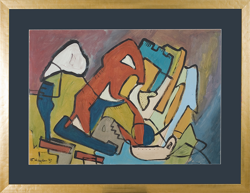 Fryderyk Antoni Hayder (Przemyśl 25 IV 1905 - Gliwice 1994) malarz, grafik; w latach 1925-1933 studiował w ASP w Krakowie - malarstwo w pracowni Józefa Mehoffera, rzeźbę u Xawerego Dunikowskiego, otrzymując dyplom z wyróżnieniem. Od 1935 zamieszkał w Warszawie. Obok malarstwa zajmował się grafiką użytkową i aranżacją wnętrz. Przed wojną brał udział w wystawach m.in. w Zachęcie (1937) i w TPSP w Krakowie (1938). Podczas Powstania Warszawskiego większa część prac uległa zniszczeniu. W 1945 artysta zamieszkał w Gliwicach, uratowane rysunki i szkicowniki z lat 1926-1944, przekazał do Muzeum w Gliwicach, gdzie po wojnie pracował jako kustosz. Współtworzył Gliwicki Oddział ZPAP, uczestniczył w wielu wystawach ogólnopolskich (Wystawa Plastyki Ziem Nadodrzańskich, W-wa 1959; Malarstwo w XV-lecie PRL, W-wa 1961). Miał szereg wystaw indywidualnych. m.in. 1957 CBWA Katowice, Szczecin; w 1984 z okazji 50-lecia pracy twórczej w Muzeum Okręgowym w Przemyślu; 1985 BWA Katowice, 1987 Zachęta Warszawa. Malował kompozycje figuralne, pejzaże, sceny rodzajowe i martwe natury. Po wojnie podejmował tematykę zaangażowana ideologicznie, od połowy lat 50. większą uwagę poświęcił stronie formalnej, malując w konwencji postkubistycznej. Obraz budował za pomocą linearnej siatki grubych konturów, kolor wyważony, rzadko o intensywnym natężeniu kładziony był płasko. Na początku lat 60. malował szereg abstrakcji o charakterze informelowskich, gdzie konstrukcja obrazu uległa zmiękczeniu, by w latach 70. powrócić do konturu wyznaczającego układ form i przestrzeń. Dążył do syntezy, malował dużymi płaszczyznami, upraszczał rysunek. Podejmował tematykę religijną, cykl „Droga Krzyżowa” znajduje się w Muzeum Narodowym Ziemi Przemyskiej w Przemyślu, jego prace są m.in. w zbiorach Muzeum Górnośląskiego w Bytomiu i w Muzeum w Gliwicach.