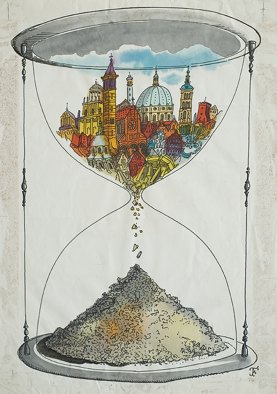 akwarela, tusz, pióro, papier