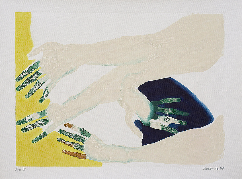 Halina Chrostowska (Warszawa 1929- Warszawa 1990) - pobierała pierwsze nauki pod okiem ojca, Stanisława Ostoja-Chrostowskiego, wybitnego grafika okresu międzywojennego i pierwszego rektora warszawskiej ASP po wojnie. Studiowała malarstwo i grafikę w latach 1946-1950 w tej uczelni. W 1950 rozpoczęła pracę pedagogiczną na Wydziale Grafiki, którą kontynuowała do 1989. Od 1962 prowadziła własną pracownię grafiki warsztatowej, w której wykształciła wielu wybitnych artystów. Równolegle działała w Związku Polskich Artystów Plastyków. Debiutowała w pierwszej połowie lat 50. cyklami akwafort, m. in. „W walce”, „Powstanie Kościuszkowskie”, „Z PGR-u”, nagradzanych na Ogólnopolskich Wystawach Plastyki (1952-1954). W 1955 zdobyła II nagrodę i srebrny medal na Międzynarodowym konkursie i wystawie towarzyszącym V Światowemu Festiwalowi Młodzieży i Studentów w Warszawie. Mimo dominacji doktryny socrealizmu, artystka potrafiła wypracować formułę realizmu dalekiego od polityki, refleksyjnego i wiernego nieupiększonym realiom tych lat. Od około 1956 w jej twórczości górę wzięło zainteresowanie eksperymentami formalnymi i technicznymi. Początkowo tworzyła grafiki czarno-białe, skupiając się na efektach fakturowych (cykle „Astralny” (1957), „Komedianci”, 1961-1963). Łączyła niekiedy matryce metalowe z linorytniczymi i drzeworytniczymi. W 1968 wprowadziła do swych prac kolor, tworząc serie „Portretów” i różnobarwnych „Figur”. Grafiki Chrostowskiej łączyły związki z równoległymi nurtami malarstwa informel, w latach 70. z pop-artem. Od końca lat 50. datują się największe sukcesy artystki na forum krajowym i międzynarodowym. Uczestniczyła m. in. w I Biennale Młodych, Paryż 1959, II Międzynarodowym Biennale Grafiki, Tokio 1960 (gdzie uzyskała nagrodę Muzeum Ohara), VI Biennale Sztuki, Săo Paulo 1961, II Międzynarodowe Biennale Grafiki, Florencja 1970 (złoty medal). Kryzys zdrowotny (nadwerężenie nadgarstków) w 1973 zmusił ją do przejściowego zaniechania forsownej pracy przy grafice. Powstał wtedy rysunkowy cykl „Ręce”, w którym artystka odbijała swe dłonie pokryte farbami. Od 1975 wróciła do grafiki, tworząc kolejne kompozycje z zarzuconych cyklów. Od 1977 wykonywała unikatowe odbitki łączące grafikę z malarstwem i collage'em. W 1986 zapadła na chorobę nowotworową. Od 1988 wprowadziła do swego warsztatu sitodruk i kontynuowała eksperymenty malarskie.