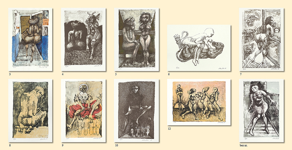Jan Lebenstein (Brześć Litewski 1930 - Kraków 1999) w latach 1948-1954 studiował malarstwo w ASP w Warszawie pod kierunkiem prof. Eugeniusza Eibischa i Artura Nachta-Samborskiego. W 1955 wziął udział w wystawie w warszawskim Arsenale. Zaprzyjaźniony w czasie studiów z Mironem Białoszewskim, swą pierwszą wystawę indywidualną pokazał w 1956 w Teatrze na Tarczyńskiej. W 1959 zdobył Grand Prix de la Ville de Paris na I Biennale Młodych w Paryżu i w tym roku przeniósł się na stałe do Paryża. Po seriach "figur kreślonych" (na papierze milimetrowym) i "figur hieratycznych" z lat 1955-1958 maluje cykl "figur osiowych" (1958-1962), które wystawia w Paryżu i USA. Równolegle w 1960 zaczyna rysowane "karnety", rodzaj dziennika, który w przyszłości dostarczy motywów wykorzystanych w obrazach. W latach 1964-1965 maluje "Bestiarium", cykl fakturowych, archaizowanych stworów przypominających prehistoryczne wykopaliska. Bezpośrednio po nich wprowadza do swych obrazów postaci ludzkie i fantastyczne, odgrywające sceny ni to mitologiczne, ni to ze snu, często przesycone erotyką. W 1970 projektuje witraże dla Centre du Dialogue w Paryżu. W W 1971 otrzymuje obywatelstwo francuskie 1974 powstają gwasze inspirowane Folwarkiem zwierzęcym George'a Orwella. W latach 1976-1989 tworzy wyłącznie w technice gwaszu i pastelu, podejmując tematykę mitologiczną i zaczerpniętą z Biblii: cykle ilustracji do Księgi Hioba (wyd. 1979) i do Apokalipsy (wyd. 1986) w nowych przekładach Czesława Miłosza. W 1989 powraca do malarstwa olejnego (cykl "Pergamon"). Artysta otrzymał m. in. nagrodę Fundacji im. Alfreda Jurzykowskiego w 1976, Nagrodę Muzeum Archidiecezji Warszawskiej w 1985, Nagrodę im. Jana Cybisa w 1987.