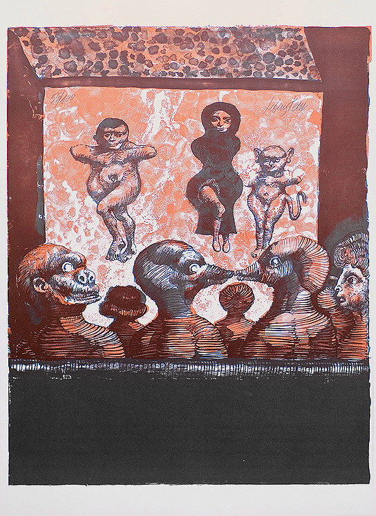 Jan Lebenstein (Brześć Litewski 1930 - Kraków 1999) w latach 1948-1954 studiował malarstwo w ASP w Warszawie pod kierunkiem prof. Eugeniusza Eibischa i Artura Nachta-Samborskiego. W 1955 wziął udział w wystawie w warszawskim Arsenale. Zaprzyjaźniony w czasie studiów z Mironem Białoszewskim, swą pierwszą wystawę indywidualną pokazał w 1956 w Teatrze na Tarczyńskiej. W 1959 zdobył Grand Prix de la Ville de Paris na I Biennale Młodych w Paryżu i w tym roku przeniósł się na stałe do Paryża. Po seriach "figur kreślonych" (na papierze milimetrowym) i "figur hieratycznych" z lat 1955-1958 maluje cykl "figur osiowych" (1958-1962), które wystawia w Paryżu i USA. Równolegle w 1960 zaczyna rysowane "karnety", rodzaj dziennika, który w przyszłości dostarczy motywów wykorzystanych w obrazach. W latach 1964-1965 maluje "Bestiarium", cykl fakturowych, archaizowanych stworów przypominających prehistoryczne wykopaliska. Bezpośrednio po nich wprowadza do swych obrazów postaci ludzkie i fantastyczne, odgrywające sceny ni to mitologiczne, ni to ze snu, często przesycone erotyką. W 1970 projektuje witraże dla Centre du Dialogue w Paryżu. W W 1971 otrzymuje obywatelstwo francuskie 1974 powstają gwasze inspirowane Folwarkiem zwierzęcym George'a Orwella. W latach 1976-1989 tworzy wyłącznie w technice gwaszu i pastelu, podejmując tematykę mitologiczną i zaczerpniętą z Biblii: cykle ilustracji do Księgi Hioba (wyd. 1979) i do Apokalipsy (wyd. 1986) w nowych przekładach Czesława Miłosza. W 1989 powraca do malarstwa olejnego (cykl "Pergamon"). Artysta otrzymał m. in. nagrodę Fundacji im. Alfreda Jurzykowskiego w 1976, Nagrodę Muzeum Archidiecezji Warszawskiej w 1985, Nagrodę im. Jana Cybisa w 1987.