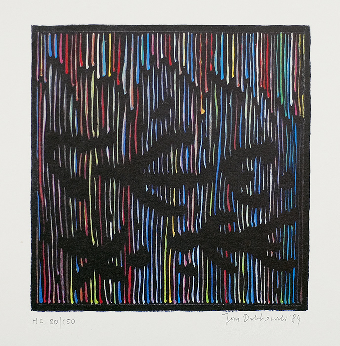 Jan Dobkowski (Łomża 1942, mieszka w Warszawie) studiował w latach 1962-1968 na Wydziale Malarstwa warszawskiej ASP pod kierunkiem prof. Juliusza Studnickiego i Jana Cybisa. Będąc jeszcze na studiach, w 1966, utworzył duet artystyczny, w którym jego partnerem był Jerzy (Jurry) Zieliński. Ich pierwsza wspólna wystawa pn. Neo-Neo-Neo odbyła się w Warszawie w 1967. Wystawiali wspólnie do 1970. W 1968 powstały pierwsze zielono-czerwone obrazy Dobkowskiego (używającego w tym czasie pseudonimu Dobson). W pracach tych, operujących giętkimi, falistymi liniami, w których upatrywano wpływów secesji, artysta używał sposobów rodem z op-artu dla wywołania złudzeń optycznych (wirowanie, mżenie, pozorny ruch form). Równolegle z obrazami tworzył też formy z płyt i folii do montowania w przestrzeni. Złoty medal na Sympozjum Złotego Grona w Zielonej Górze w 1971 i blisko roczny pobyt w USA na stypendium Fundacji Kościuszkowskiej w 1972 to kolejne etapy pełnej sukcesów kariery malarza. Wyraźną zmianę nastroju i wymowy jego prac przyniosły wydarzenia 1980-1981 roku, zwłaszcza wprowadzenie stanu wojennego. Monochromatyczne, ciemne płótna znaczył wtedy nikłymi, wiotkimi liniami rysunku. Najczęstszym motywem były patriotyczne i religijne symbole, dopowiadane tytułami nawiązującymi do realiów czasu. Kolejna radykalna zmiana nastąpiła ok. 1990. Symbolicznym zwiastunem nowego okresu stał się olbrzymi, radosny, eksplodujący bogactwem barw, kształtów i ruchu obraz ...a życie sobie płynie... (394 x 588 cm) z 1990-1991. Podobne cechy formalne charakteryzują twórczość artysty w całej dekadzie lat 90. Równolegle z malarstwem Dobkowski pracuje nad rysunkiem, będącym bardzo ważnym dopełnieniem jego twórczości.