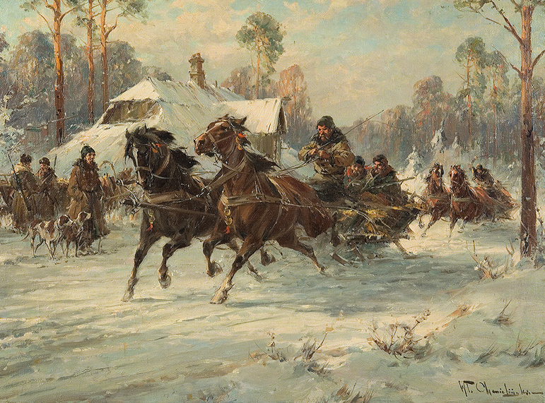 Władysław Chmieliński (Warszawa 1911 - Warszawa 1979) był malarzem związanym z Warszawą, gdzie stale mieszkał i pracował. W latach 1926-1931 studiował w warszawskiej Miejskiej Szkole Sztuk Zdobniczych i Malarstwa (dawna Klasa Rysunkowa). Wiodącym tematem jego obrazów były widoki miejskie, malowane olejno i akwarelą. W latach 1935-1938 stworzył cykl akwarel przedstawiających obiekty polskiej architektury; wśród nich, widoki Sandomierza, Krakowa, Kazimierza nad Wisłą, a także wnętrza zabytkowych kościołów czy pałaców, m.in. Zamku Królewskiego w Warszawie i Pałacu w Wilanowie. Malował także pejzaże i wiejskie sceny rodzajowe – kuligi, sanny, zaprzęgi, wesela, konie na tle krajobrazu. W latach 1967-1969 wyjeżdżał na dłuższe pobyty do Danii. W latach 1936-1939 artysta używał także pseudonimu „Władysław Stachowicz”.