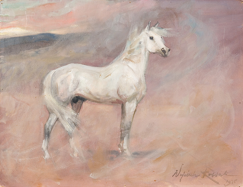 Wojciech Kossak (Paryż 1856 - Kraków 1942 ) – powszechnie znany malarz, postrzegany przede wszystkim jako świetny batalista. Syn i uczeń Juliusza Kossaka kształcił się w krakowskiej Szkole Sztuk Pięknych, w Akademii monachijskiej oraz w Paryżu. W latach 1895-1902 przebywał głównie w Berlinie, pracując dla cesarza Wilhelma II. Wiele podróżował, m.in. do Hiszpanii i Egiptu, gdzie wykonywał szkice do zamierzonych panoram. W późniejszych latach kilkakrotnie wyjeżdżał do Stanów Zjednoczonych wykonując zamówienia portretowe. W 1913 był mianowany profesorem warszawskiej Szkoły Sztuk Pięknych. W latach I wojny światowej pełnił służbę wojskową. Był współautorem panoram: „Racławice” (1893-1894), „Berezyna” (1895-1896), „Bitwa pod piramidami” (1901) oraz szkiców do niezrealizowanej „Somosierry” (1900). Z temperamentem i swobodą tworzył szeroko malowane, dynamiczne sceny batalistyczne, historyczne, rodzajowe oraz liczne portrety. Z upodobaniem malował konie. Jego obrazy, gloryfikujące dawne i współczesne artyście polskie wojsko i bohaterstwo żołnierzy, trafiały do patriotycznych uczuć odbiorców i cieszyły się ogromna popularnością.