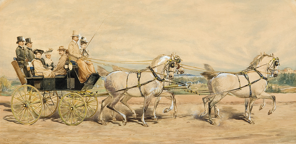 JAZDA POWOZEM W ZAPRZĘGU, 1907