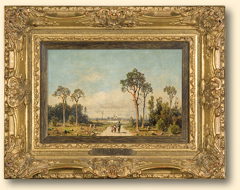 Aleksander Świeszewski był malarzem pejzażystą, jednym z przedstawicieli polskiej kolonii artystycznej w Monachium. Naukę malarstwa rozpoczął w warszawskiej Szkole Sztuk Pięknych, jako uczeń Christiana Breslauera. W roku 1863 walczył w powstaniu styczniowym; po jego upadku wyjechał do Monachium i kształcił się w tamtejszej Akademii u prof. Fritza Bambergera. Wiele podróżował – był we Włoszech i Francji, wyjeżdżał do Tyrolu i Szwajcarii. W 1873 zamieszkał na stałe w Monachium. Często jednak przejeżdżał do kraju; chętnie odwiedzał Tatry. W czasie podróży wykonywał studia i malarskie szkice z natury, które służyły mu później przy malowaniu obrazów, wykańczanych już w pracowni. Najchętniej malował krajobrazy górskie, często oświetlone promieniami zachodzącego słońca. Przedstawiał też pejzaże nadmorskie i ogrody ze starożytnymi ruinami. Artysta wystawiał w wielu miastach europejskich, a także w kraju; w Zachęcie w Warszawie i Towarzystwie Przyjaciół Sztuk Pięknych w Krakowie (w latach 1864-1895 niemal corocznie). Jego obrazy cieszyły się niekłamanym uznaniem krytyki oraz powodzeniem u publiczności. W 1881 jeden z pejzaży kupił sam Ludwik II, król Bawarii. Po śmierci artysty, w monachijskim Kunstvereinie – w kwietniu 1896 – urządzono wystawę jego spuścizny twórczej. Wówczas to – jak pisał monachijski krytyk – „można było stwierdzić jak bardzo był on oddany sztuce. Każde studium pokazuje, jak potrafił z wielką techniczną umiejętnością oddać szlachetnie rozumianą, głęboko odczutą naturę [..] wszystkie przenikał poetyczny urok”. (cyt. za: H.Stępień, M.Liczbińska, Artyści polscy w środowisku monachijskim w latach 1828-1914. Materiały źródłowe, Warszawa 1994, s. 97).