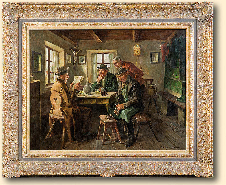 Adolf Nauer - niemiecki malarz rodzajowy, czynny w Monachium. Studiował w tamtejszej Akademii Sztuk Pięknych; był uczniem Ludwiga Löfftza, Franza von Stucka, Martina Feuersteina. Następnie odbył kilka podróży studyjnych - do Belgii, Holandii, Włoch i Francji. Malował portrety, pejzaże oraz sceny rodzajowe, w których dostrzegalne są inspiracje zarówno twórczością F. Defreggera, jak i dawnym malarstwem holenderskim. Tematami jego obrazów bywały sceny z codziennego życia mieszkańców Bawarii i Tyrolu, a także - osadzone w realiach XVII wieku - kostiumowe sceny w „holenderskich“ wnętrzach. Nauer należał do monachijskiego Stowarzyszenia Artystów i brał udział w licznych wystawach.