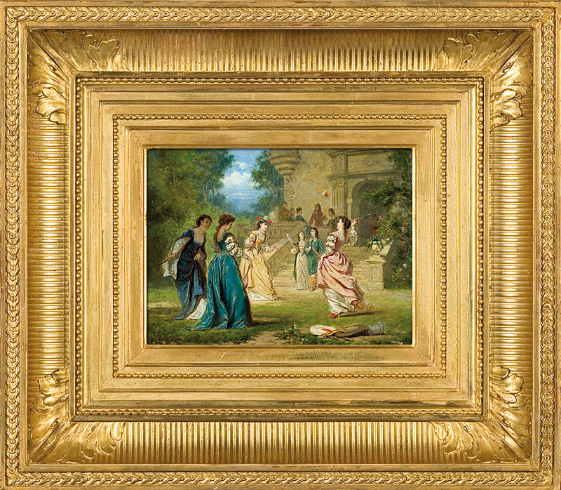 Technicznie bardzo zdolny, wykonał mnóstwo niewielkich obrazów modnego z końca XVI lub początku XVII w. - epoki, która sumiennie wystudiował. Uczty, tańce, odwiedziny, trefnisie, pazie, Walezjusze, Buckinghamy - dostarczyli mu anegdot historycznych niezbyt głęboko pojętych oraz pretekstu do malowania starych szaf, krzeseł, dywanów, poduszek, kotar, puzder, koronkowych kołnierzów itp. rekwizytów kuchni historyczno-rodzajowego malarstwa.