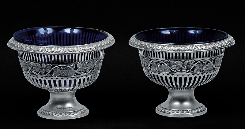 srebro, szkło kobaltowe